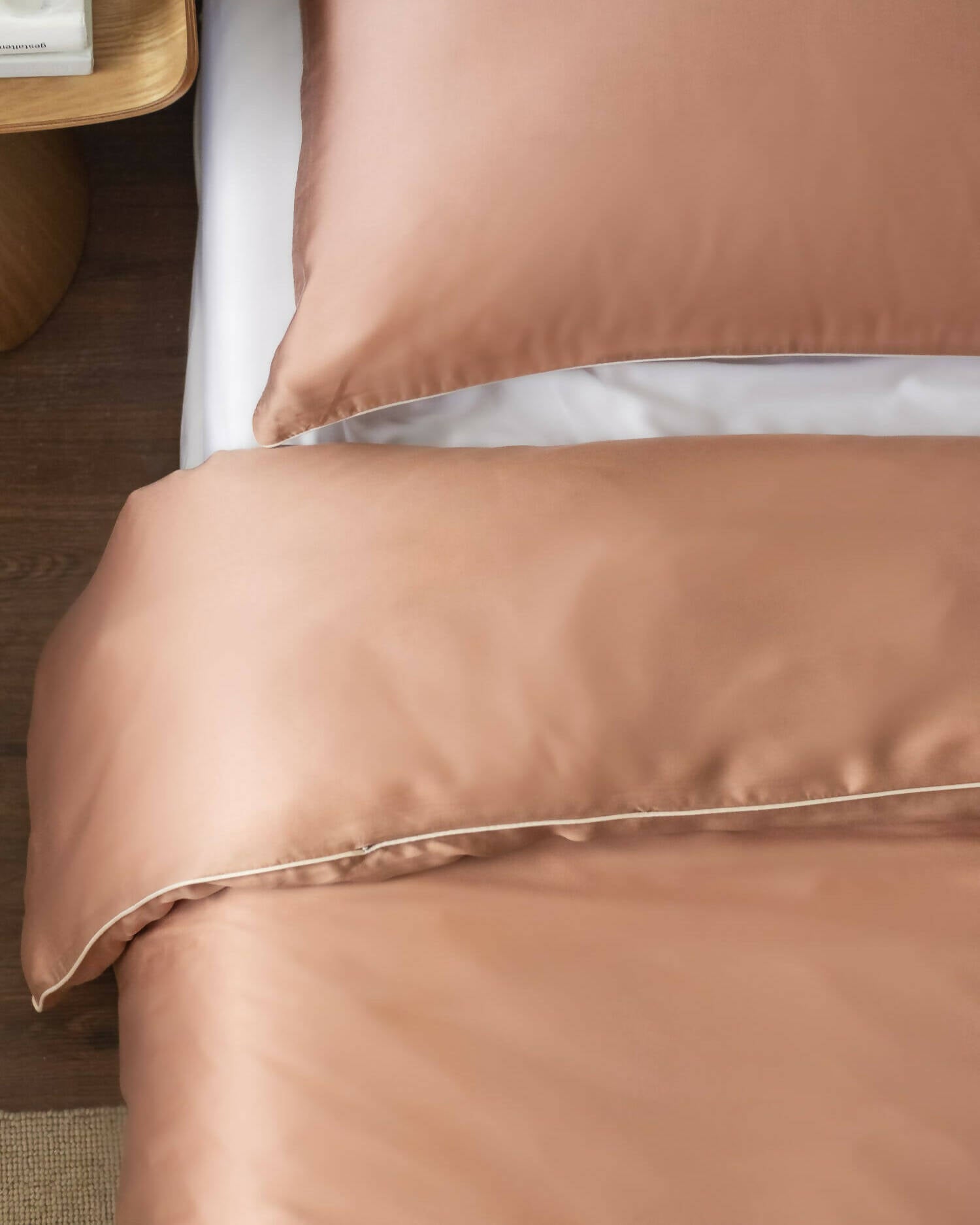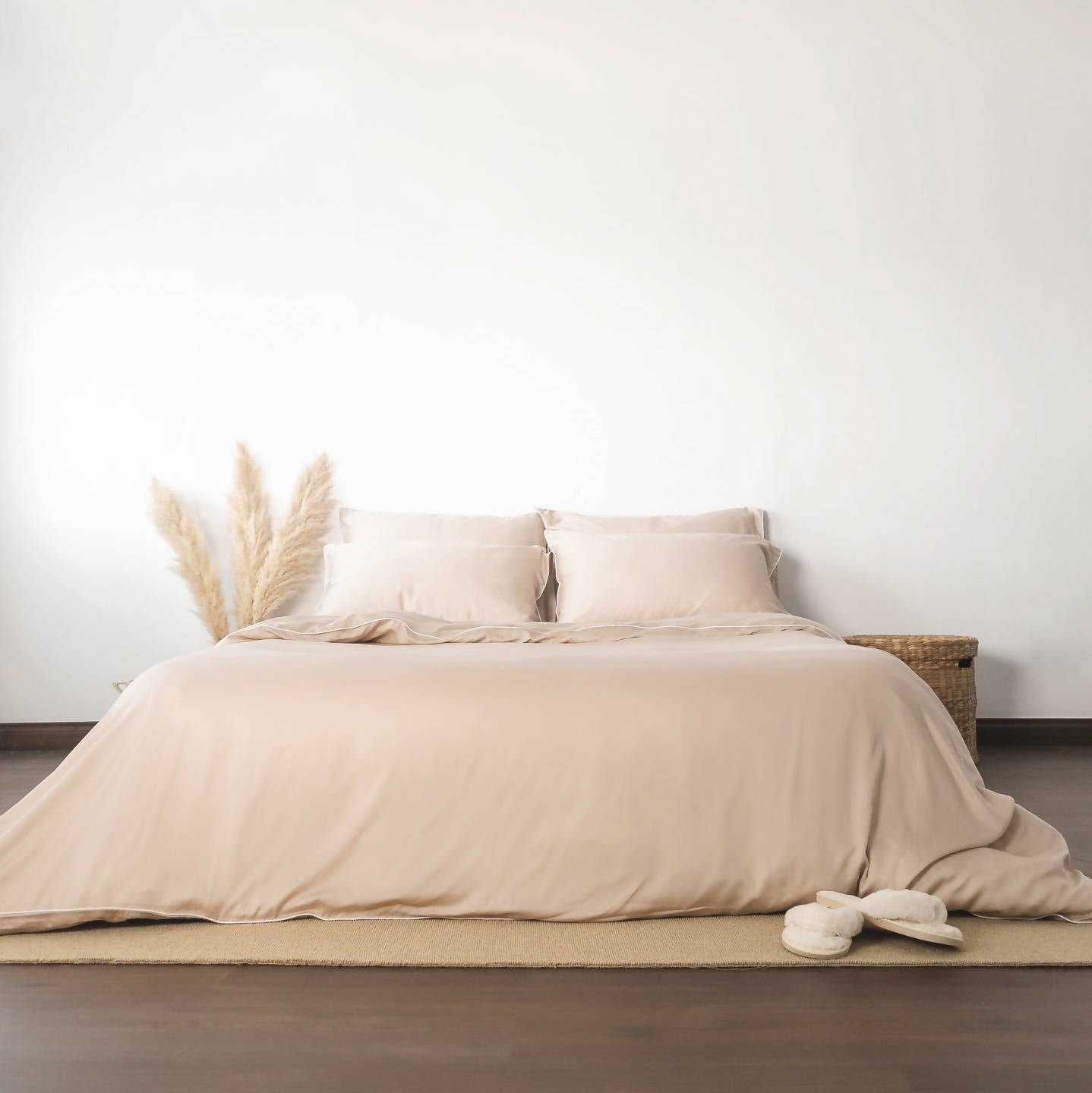 The softest bedding you'll ever sleep on. Experience the best sleep naturally with ultra-soft and buttery smooth Bamboo Lyocell. Cozy yet cool. Light, breathable and thermo-regulating—constantly adjusting to your body temperature for optimal coziness all-year long. Moisture-wicking. Unlike cotton which absorbs moisture, bamboo wicks it away so you stay fresh and dry all night. Skin- & hair-friendly. Its smooth texture feels amazing against the skin, prevents irritation, wrinkles and frizzy hair. Good bye bed head, hello beauty sleep! Hypoallergenic & naturally antimicrobial. Bamboo is naturally resistant to bed bugs, dust mites and other allergens. Perfect for those with sensitive skin. Material 100% Organic Bamboo Lyocell STANDARD 100 by OEKO-TEX® Certified — tested for 350+ harmful substances to textile manufacturing Lightweight, machine washable and quick-drying Designed for Easy Bedmaking Durable invisible zipper closure Hidden hand-holes on the sides — to easily change and adjust duvet Interior corner ties — to keep duvet in place Durable contrast piping — for an understated modern look and to protect edges Includes 1 x duvet cover Reusable bamboo drawstring bag Size Chart (Width x Length x Depth) Twin 68" x 90" Full|Queen 86" x 90" King|Cali King 102" x 90"