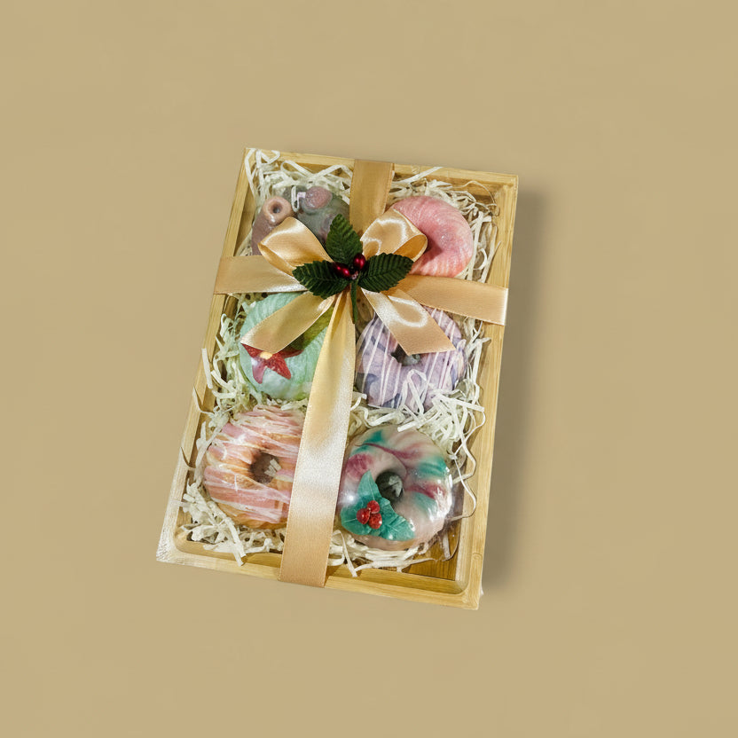 BATHGEMS CHRISTMAS GIFT SET A holiday treat just for you! A curated selection of BATHGEMS signature artisan soaps, made in small batches with nourishing oils, butters, and botanicals, presented in a reusable bamboo tray. Each bar is gentle on skin, free from harsh chemicals, and infused with natural goodness- perfect for turning your daily bath into a little moment of luxury. Contains 6-pcs of Artisanal Bath soaps Made proudly by Bathgems - a Women-Led Filipino Artisan Entrepreneur