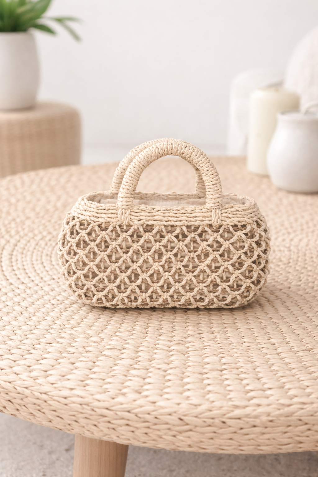 Features an airy open-weave design that highlights natural texture and artisanal craftsmanship.