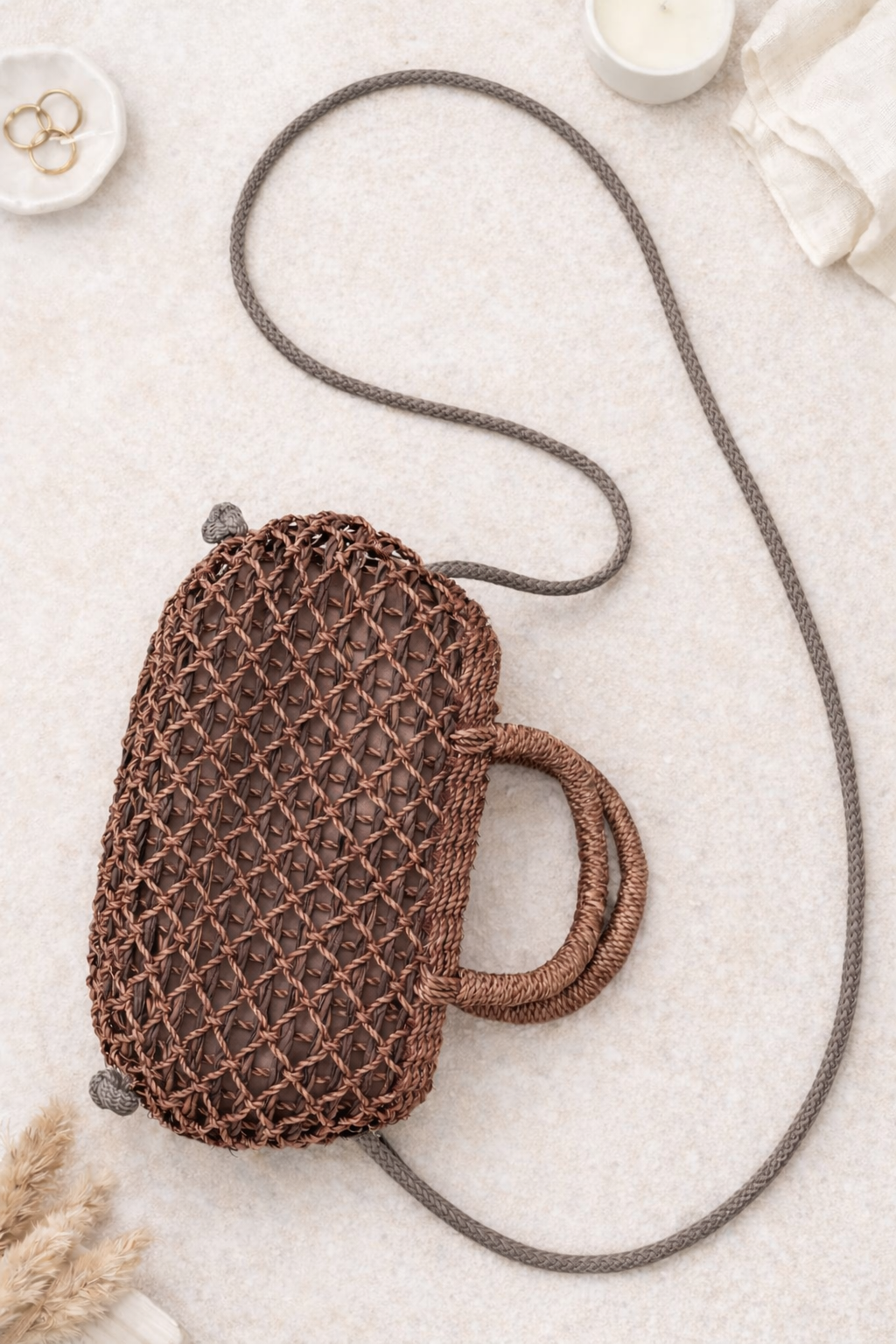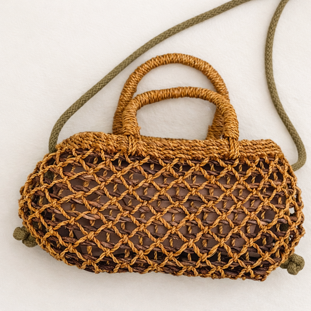 Handwoven abaca mini doc sling bag designed for lightweight, hands-free everyday use.
