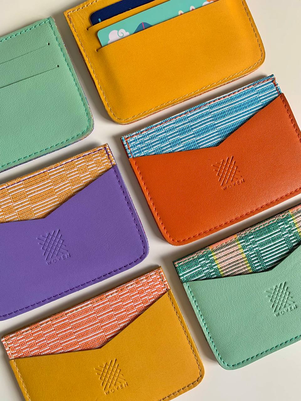 Made to keep the stuff in your pocket organized, these slim card holders will fit your IDs, cards, and bills easily.  Dimensions: 11 cm x 8 cm Genuine leather Handwoven fabric sourced from weavers in Benguet Three (3) card slots that can fit two cards each Crafted and stitched in Marikina, Philippines