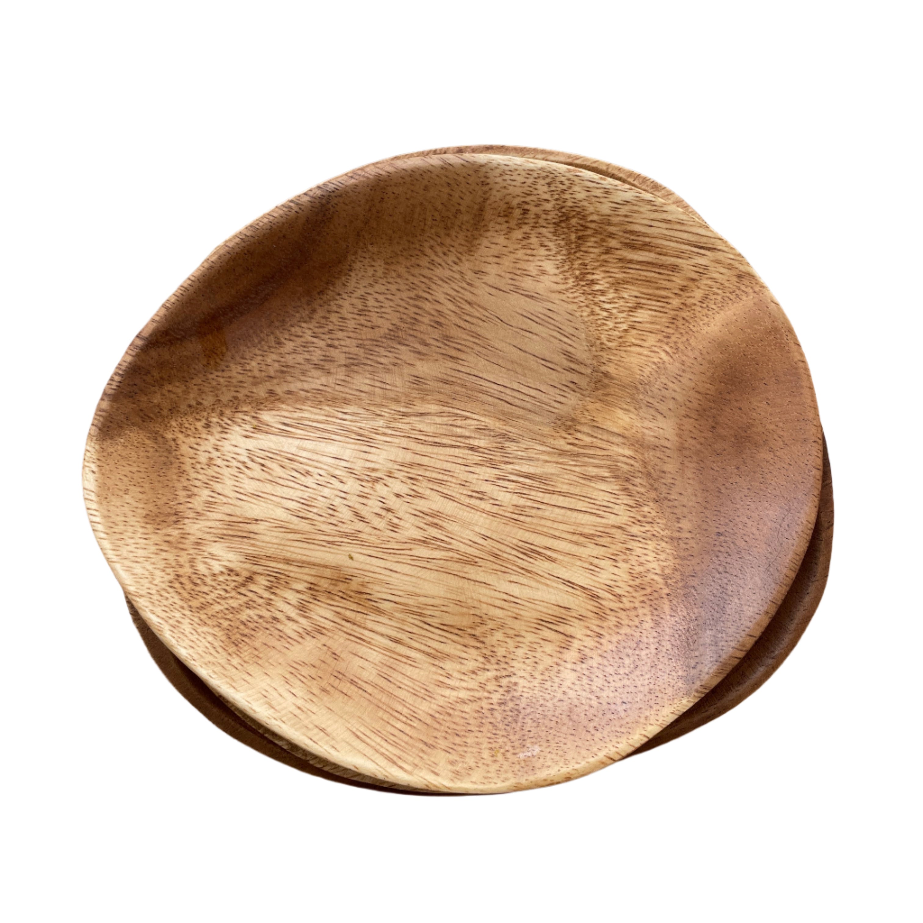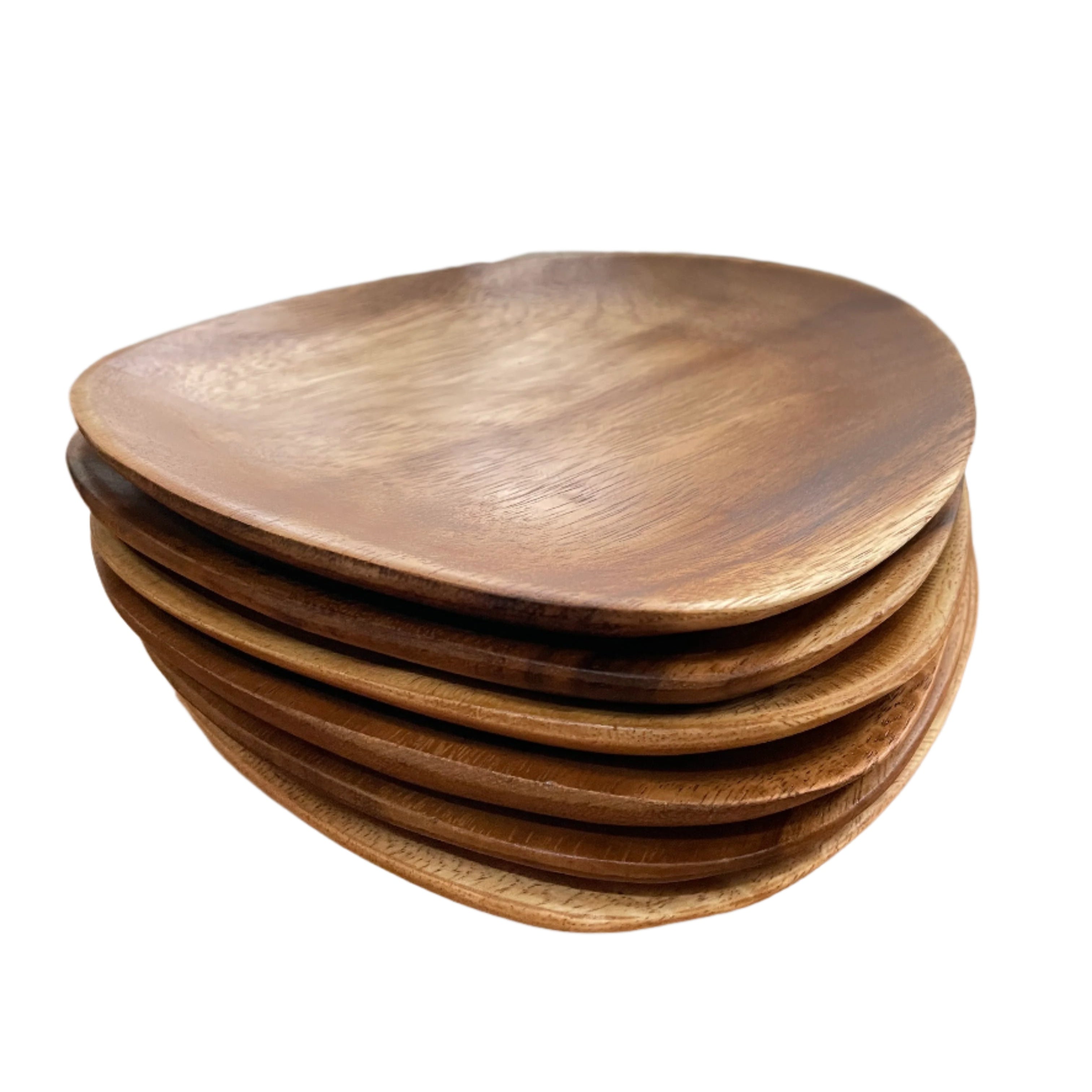 Description: Hand-carved acacia plates crafted by our local artisans, perfect for your daily home needs. Care Instructions: -Hand wash in soapy water and either rack dry or pat dry. -DO NOT place in the dishwasher. -Make sure they are dry before storing. -Occasionally soak in warm water for 15 minutes and season with vegetable oil to keep it looking great. Acacia wood is known for its strength, durability, and attractive grain patterns, making it popular for use in furniture, flooring, home and decorative items. Sizes Available: Plate 8"x9"