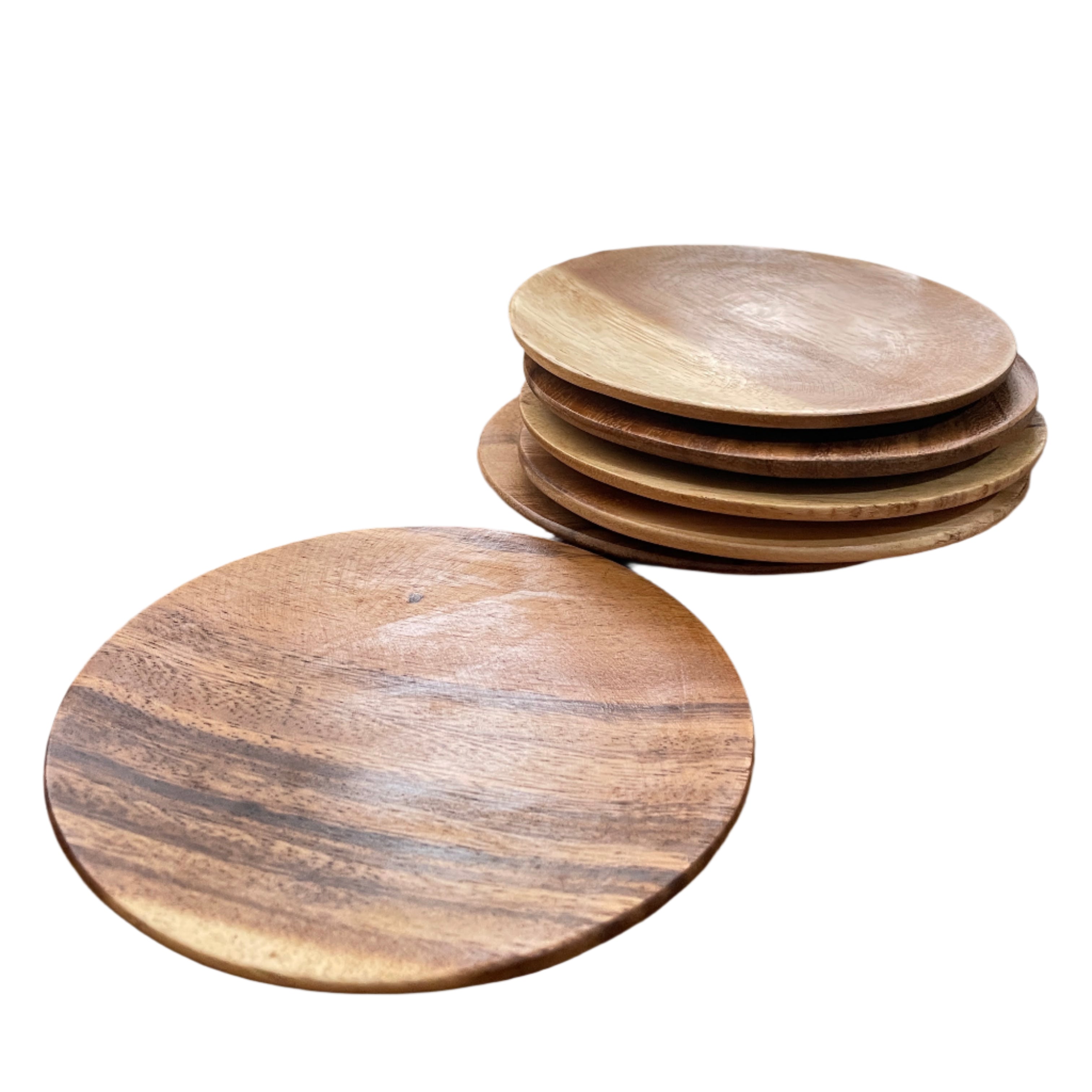 Hand-carved acacia saucer crafted by our local artisans, perfect for your daily home needs.
