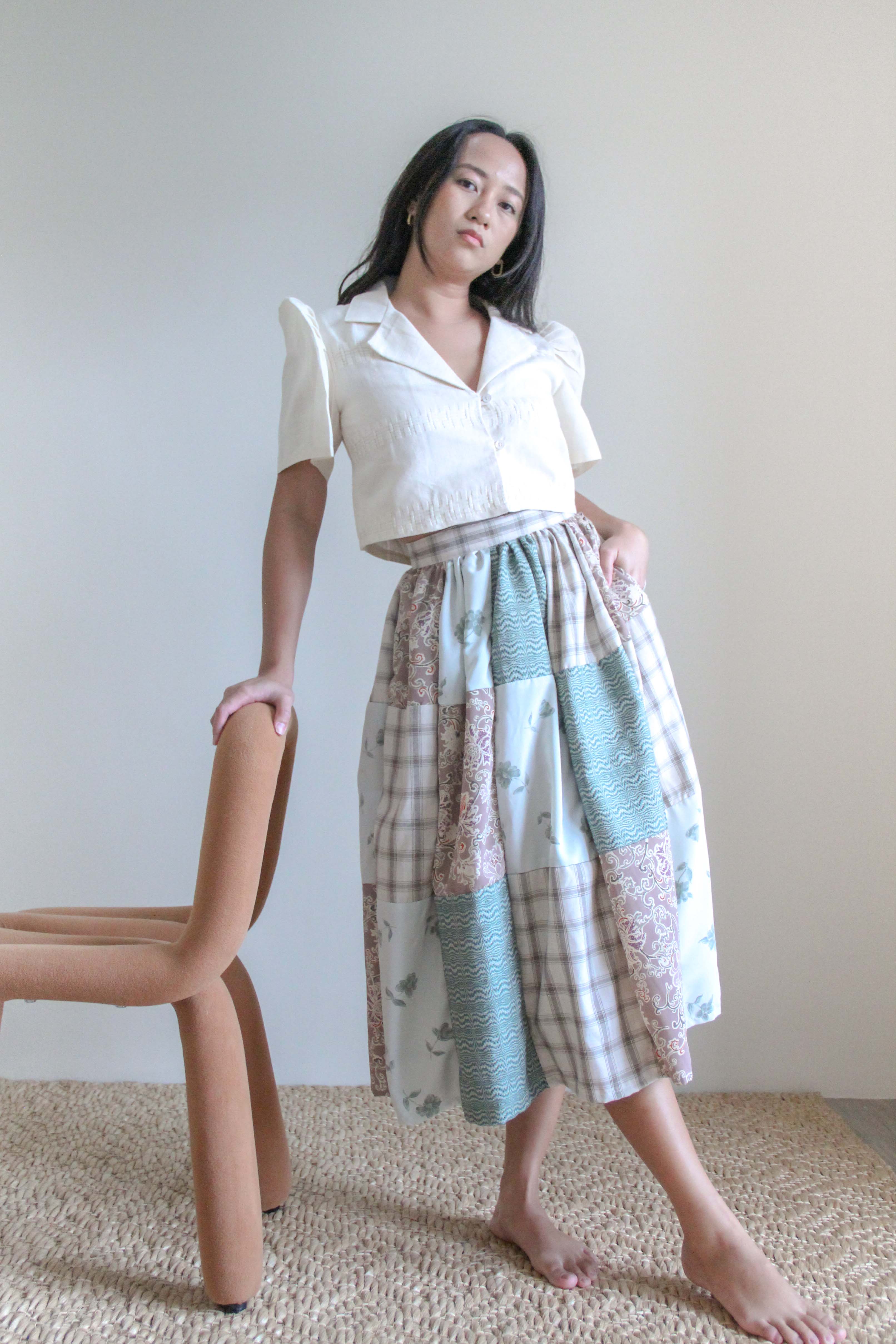 A celebration of memory, craft, and cultural layering — the Adhika Skirt is inspired by the warmth of nostalgic patchwork blankets from our lola’s home and the layered elegance of traditional tapis and saya skirts .