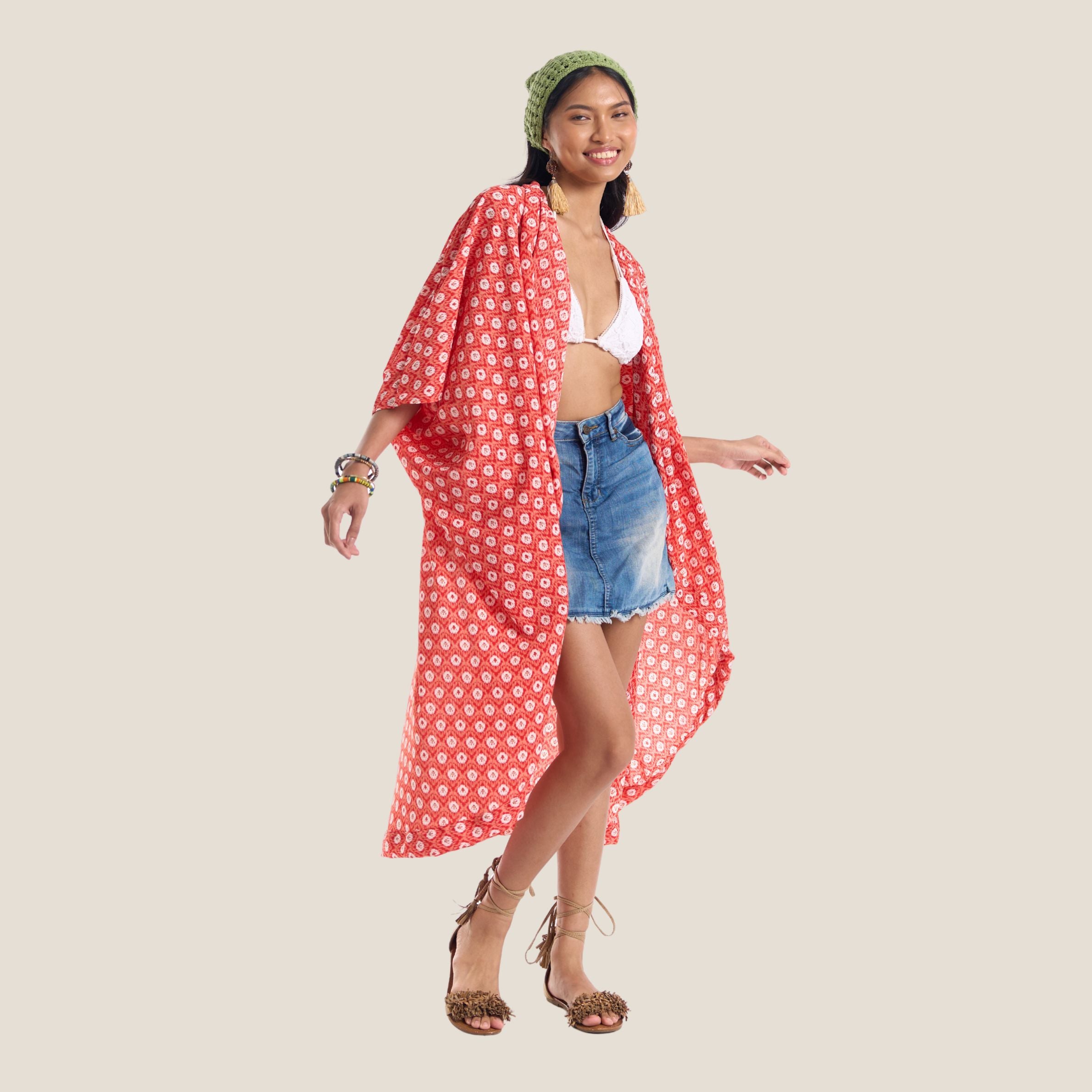 Can be worn as a cover-up, cardigan and wrap-around skirt
