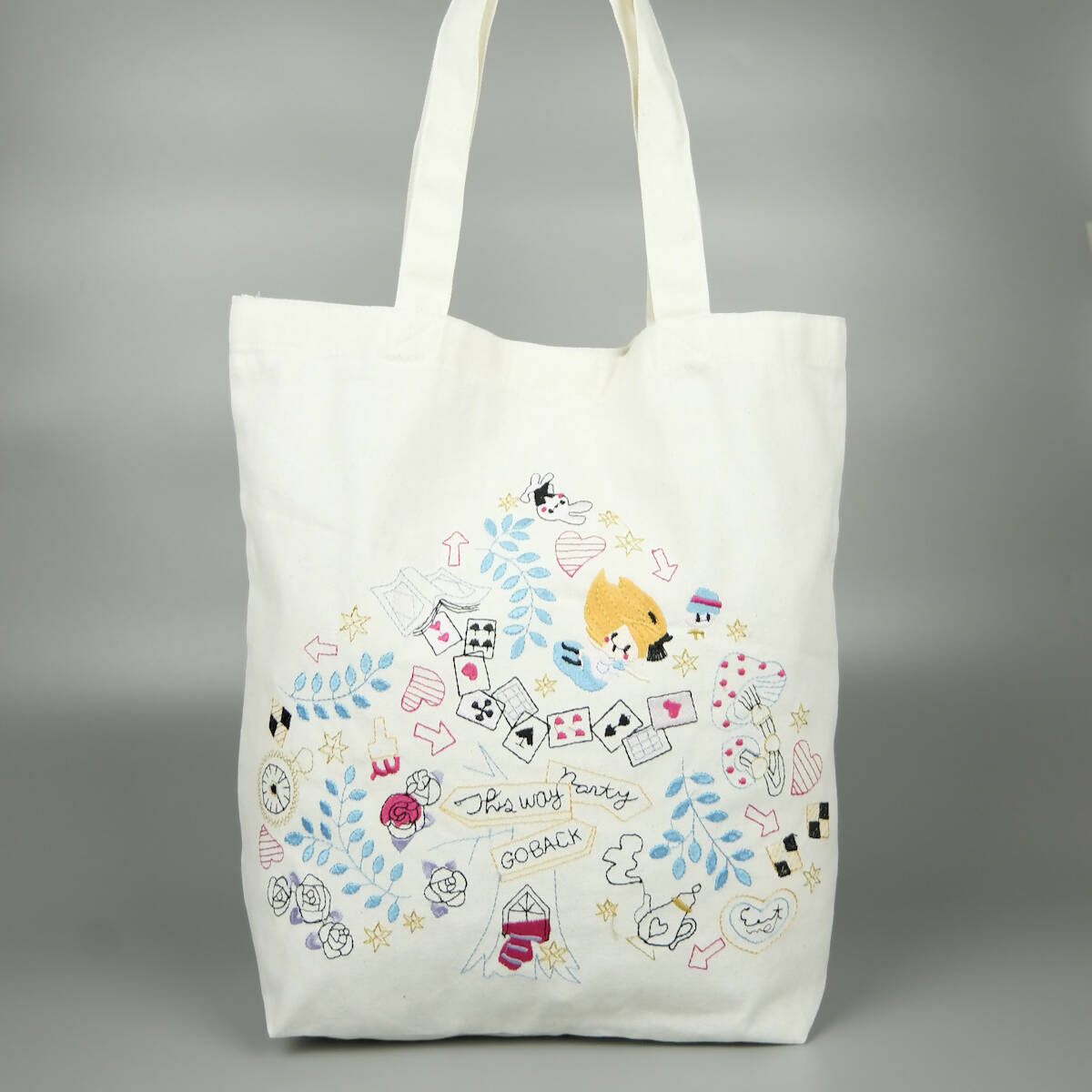 Alice in Wonderland on Natural Canvas Shoulder Tote