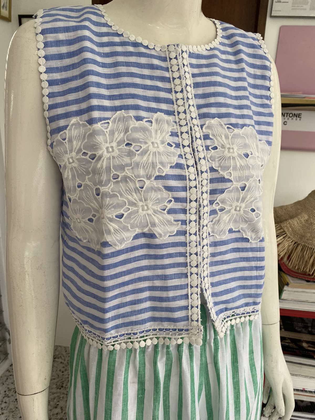 Marrying structured sophistication with playful Artisinal charm, the Alice Vest Top is the statement piece your wardrobe needs this season. This boxy top elevates a classic silhouette with its vibrant print and intricate craftsmanship.