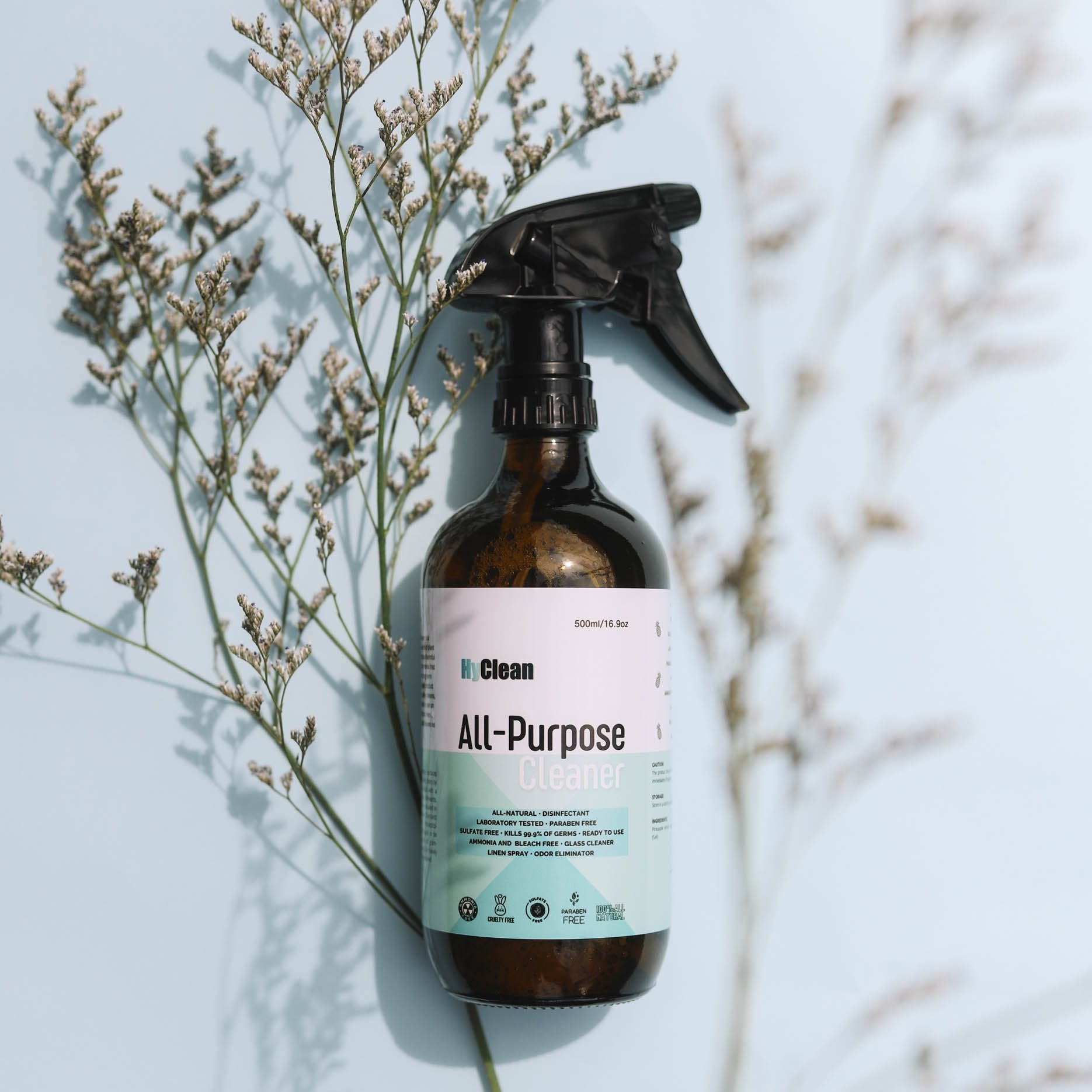 HyClean All-Purpose Cleaner is the all-natural solution to all your cleaning and disinfecting needs! It is made from 100% natural ingredients and smells amazing without all those harmful chemicals. Clean and disinfect away without the harmful side effects of bleach and ammonia. Safe to use on any surface or equipment such as metal, leather, plastic, rubber, and glass. Did we mention its laboratory tested and hospital grade too?
