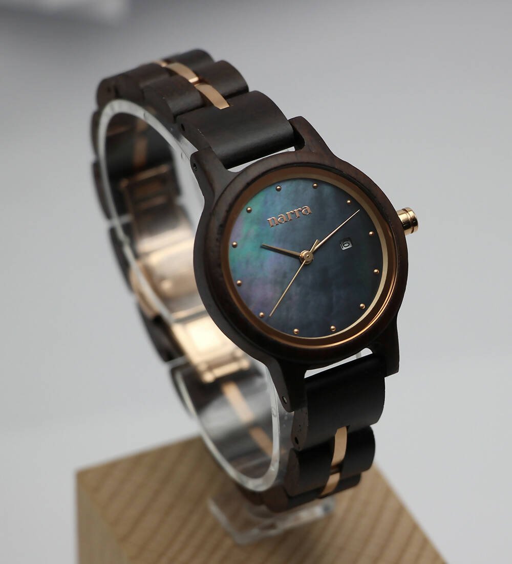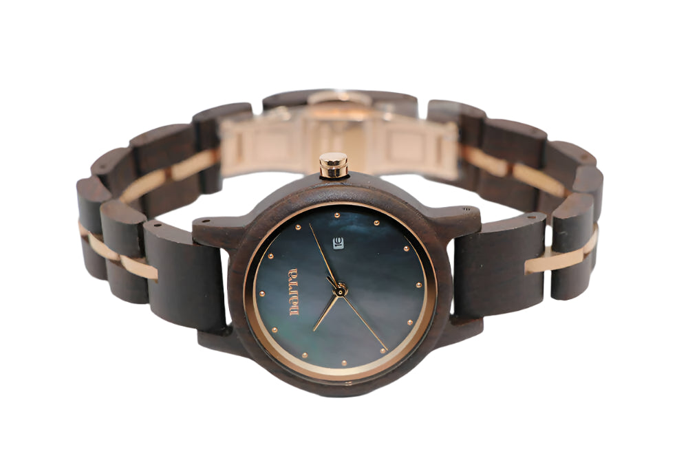 • Watch Dial - Iridescent black mother of pearl dial with rose gold details