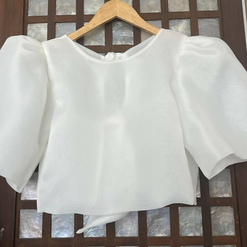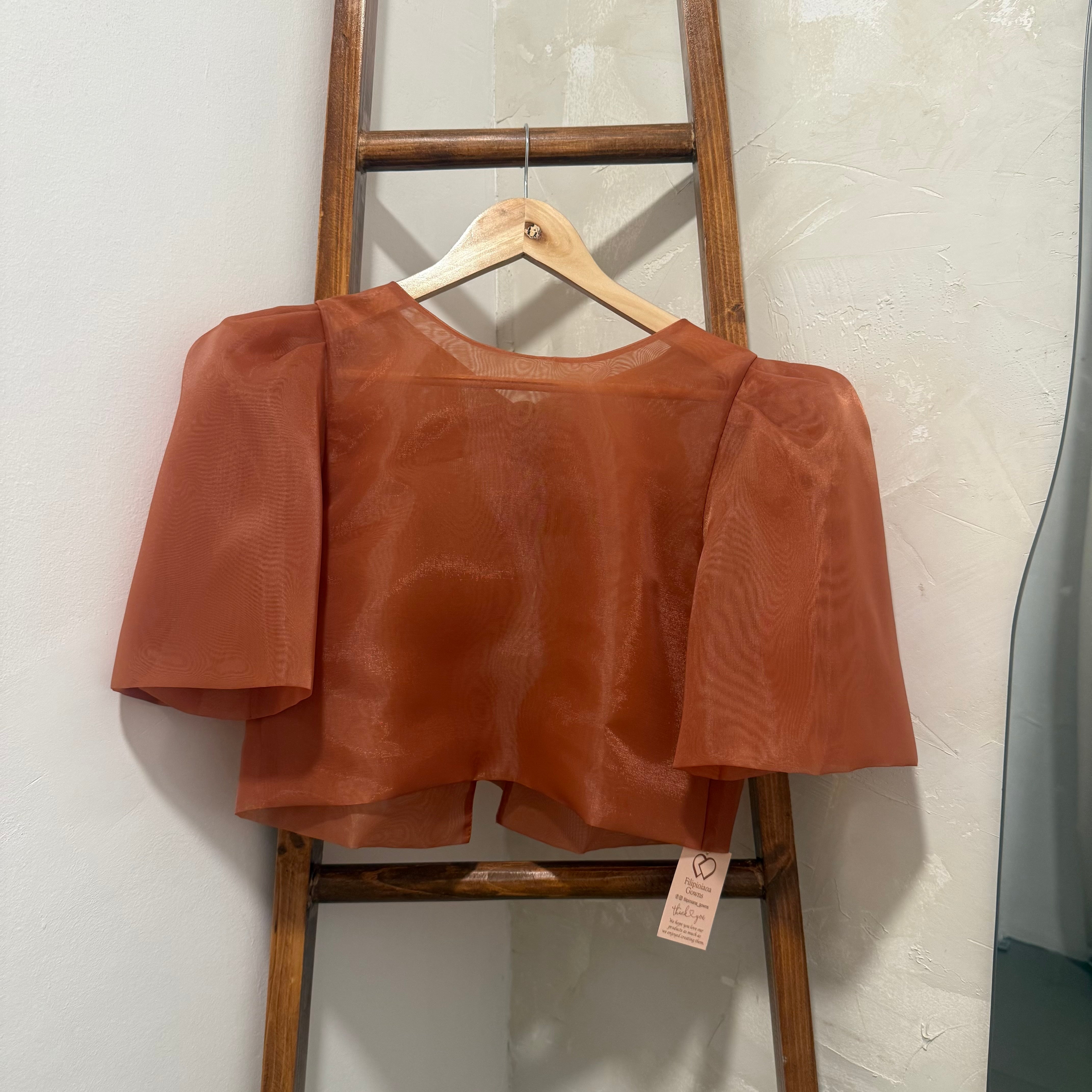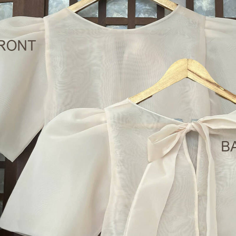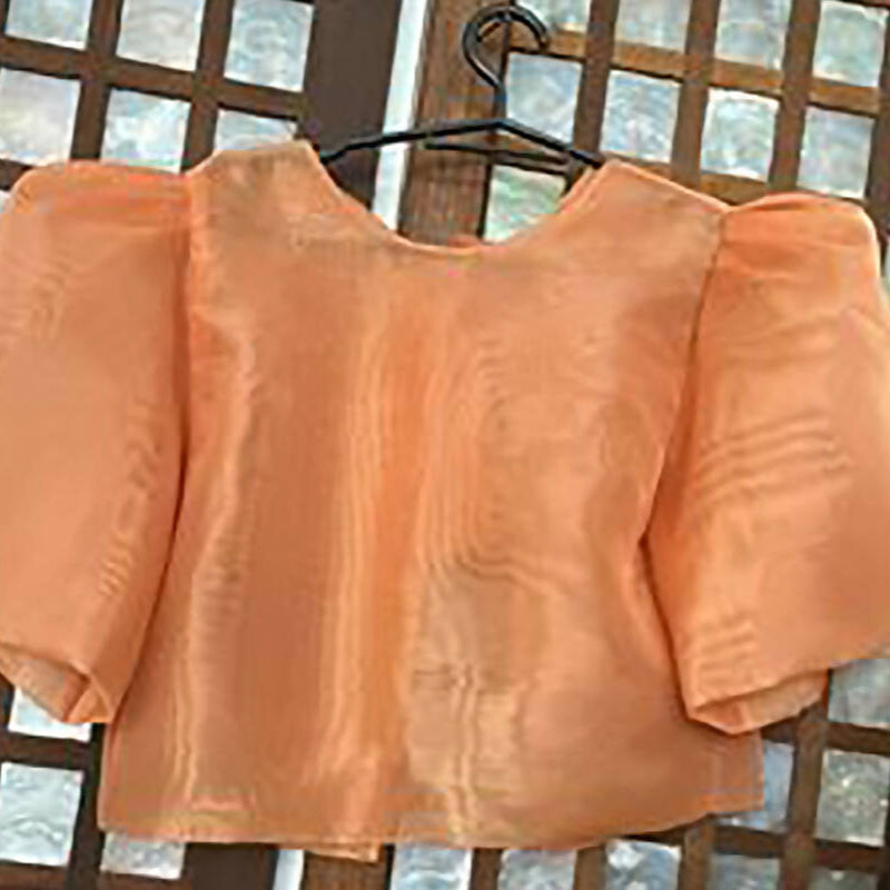 KIMONA BLOUSE also known as the top part of Filipiniana Terno attire that embodies elegance of our cultural heritage. It is characterized by its loose-fitting, short-sleeved blouse that is typically made from lightweight and colorful fabrics and flowing silhouette. Its butterfly sleeves are wide and voluminous, extending from the shoulder to the forearm, creating a distinctive and graceful appearance. Fabric: 2 FLY MATTE ORGANDI Sizes  Shoulder Bust Length S 14 34 15 M 15 36 17 L 16 38 18 XL 17 40 20