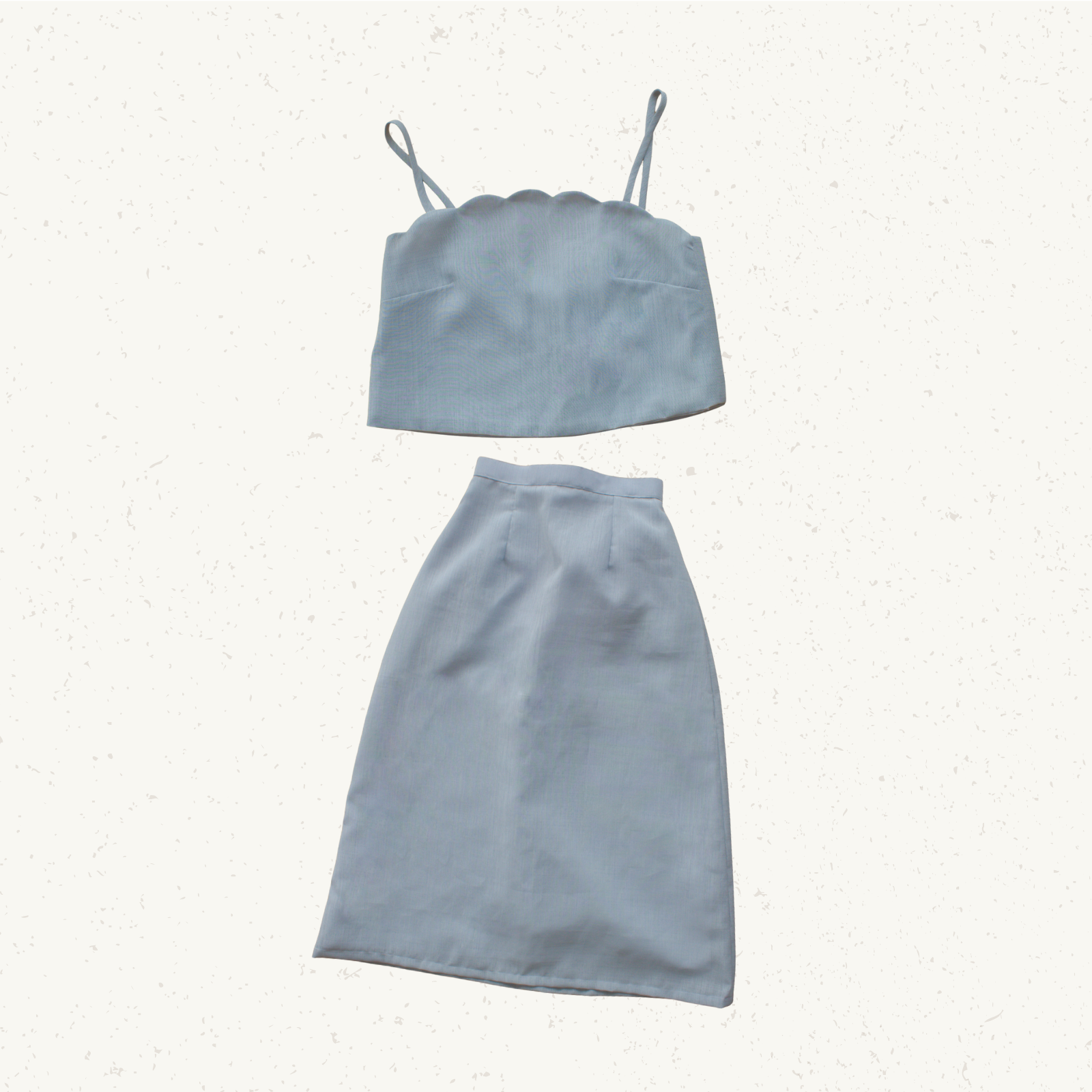 The Aria Set features a structured top and matching skirt with clean lines and a flattering fit — perfect for everyday wear or special occasions