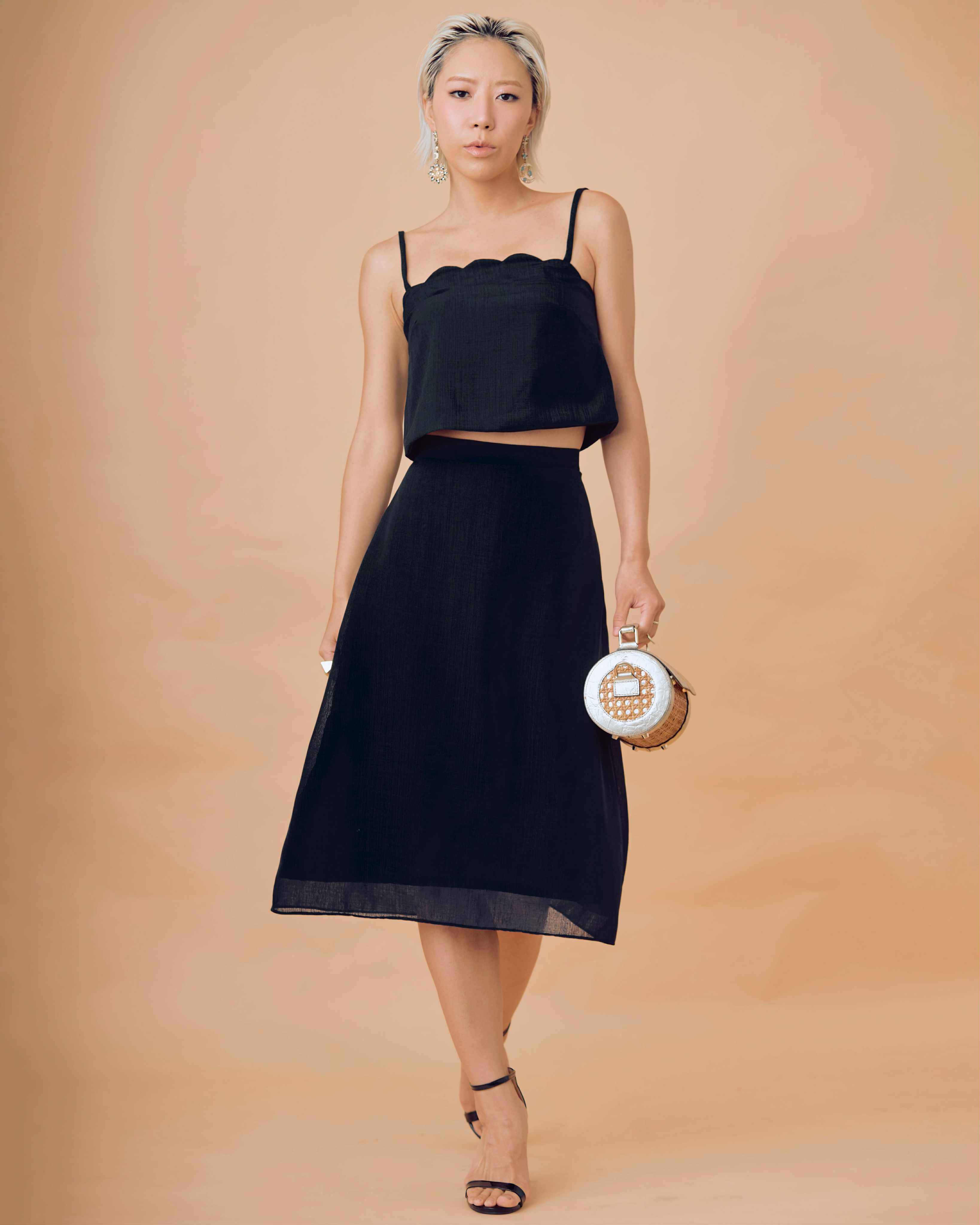 The Aria Set features a structured top paired with a matching skirt, designed with clean lines and a flattering fit — perfect for both everyday wear and special occasion
