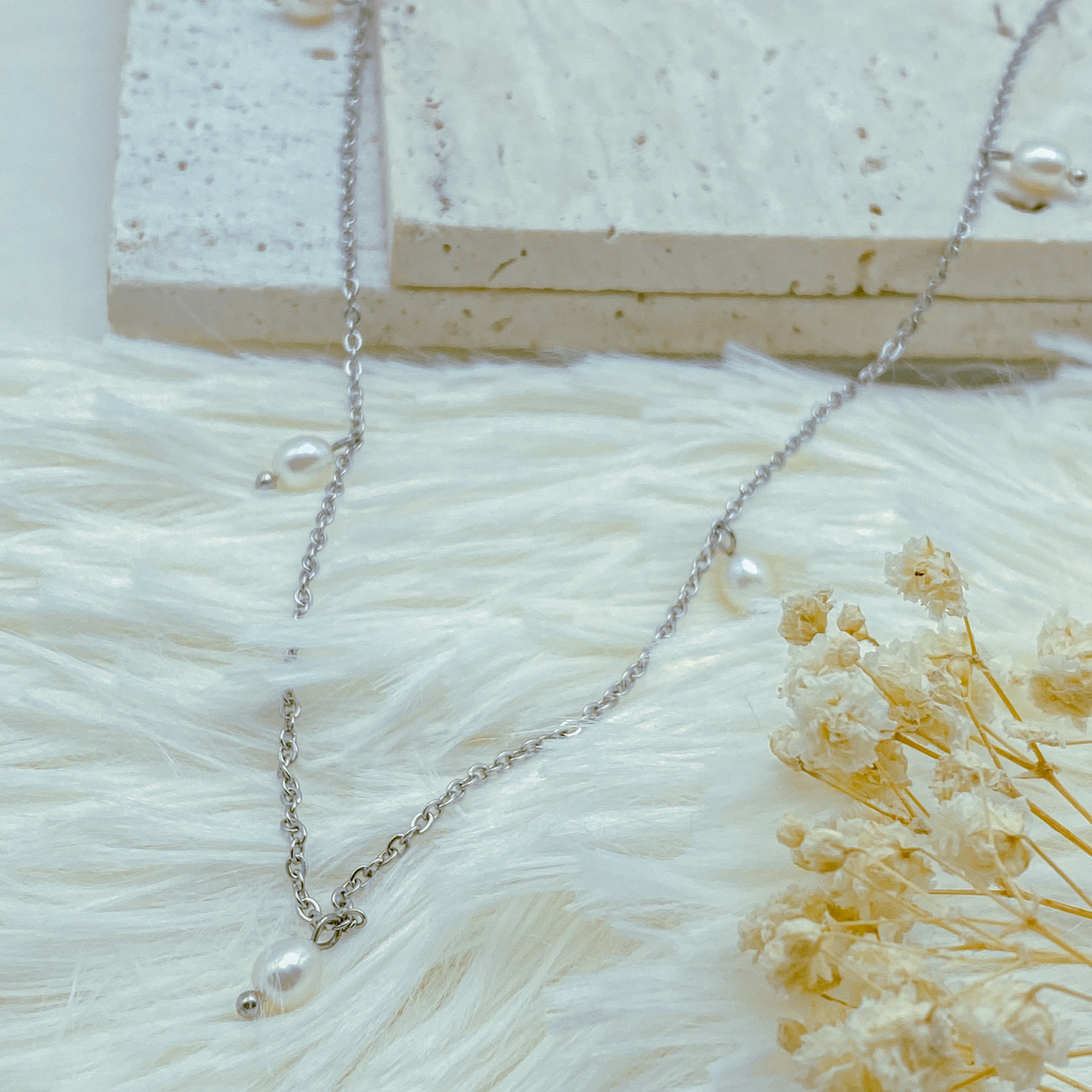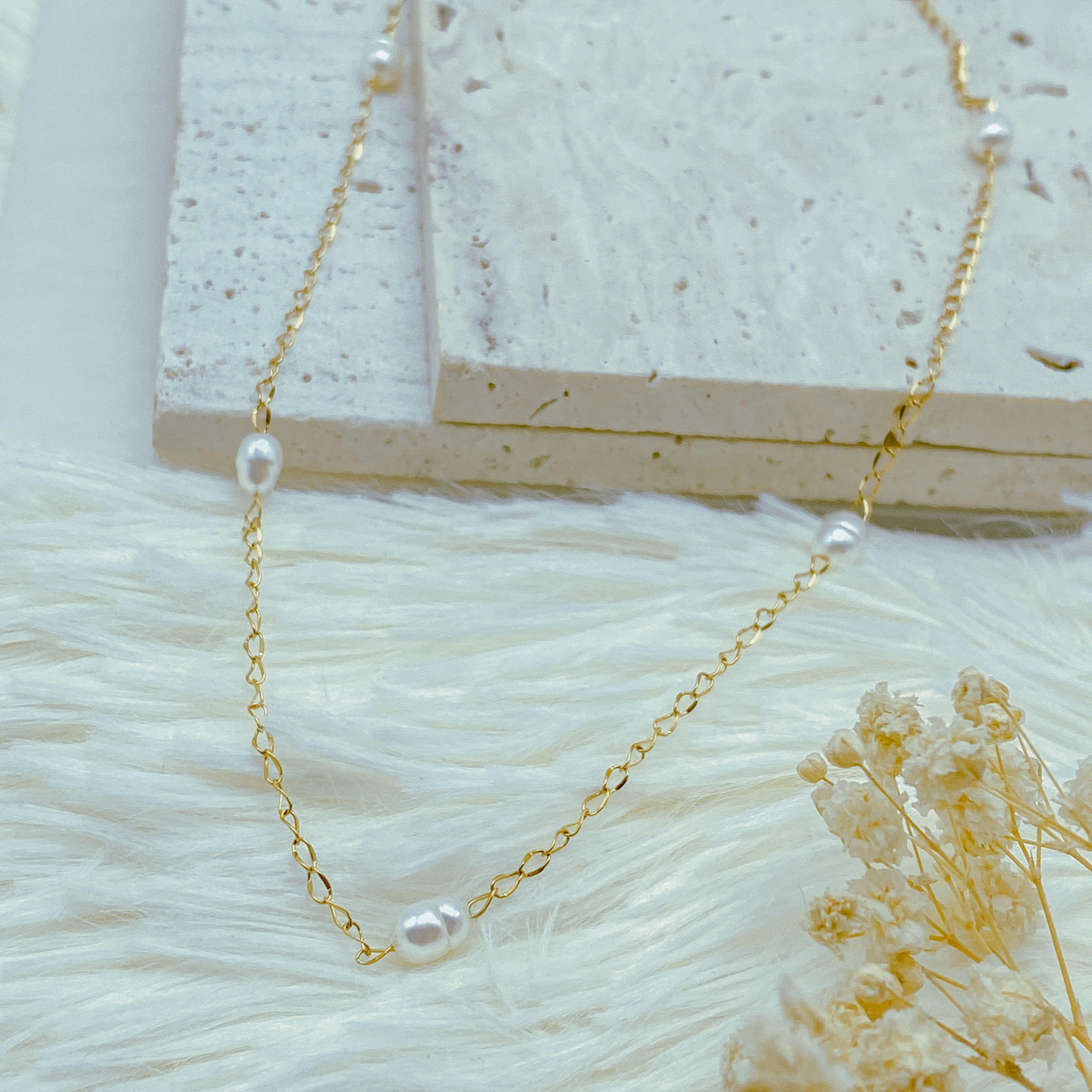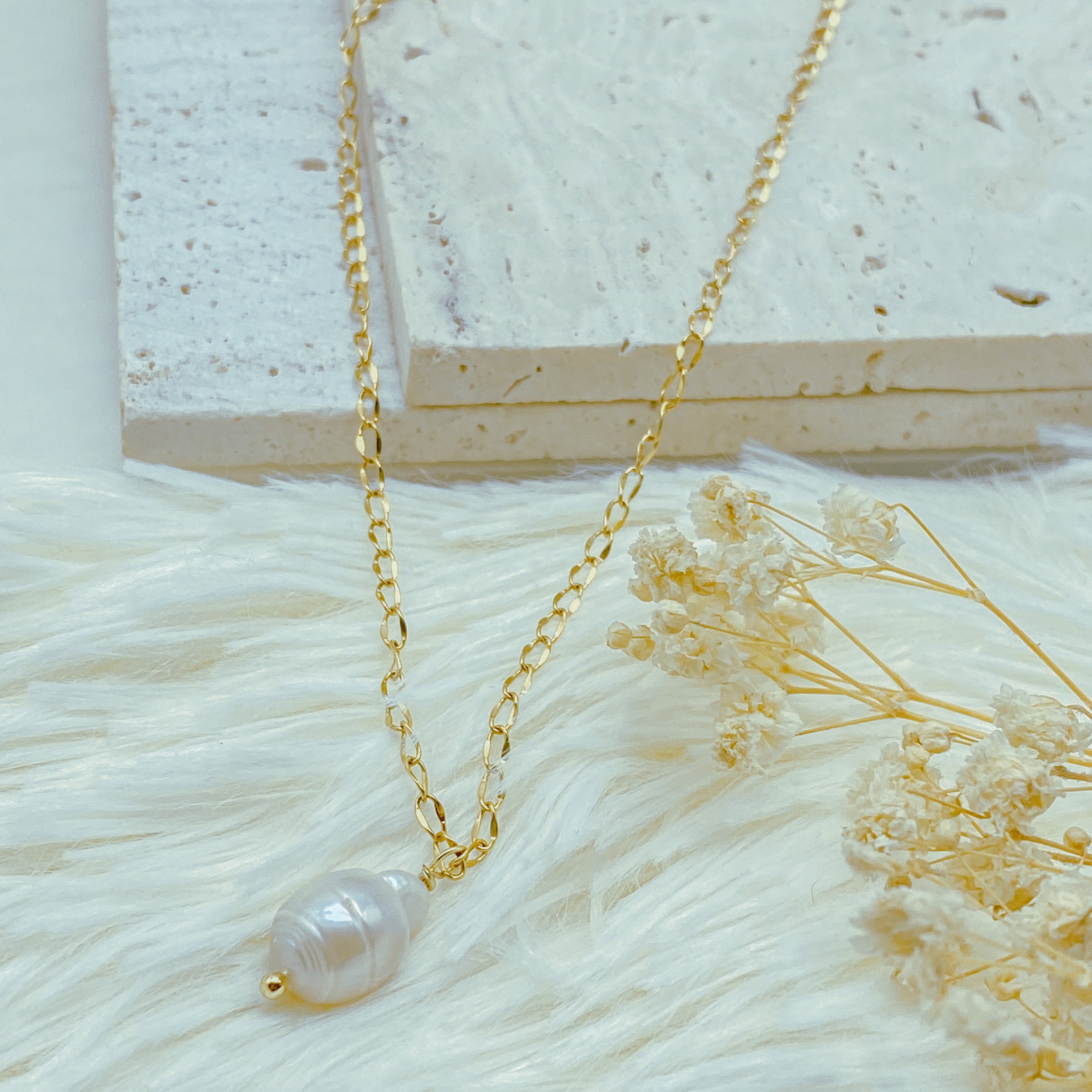 Materials:Real freshwater pearls in gold plated stainless steel setting.Pearls vary in size and shape.Each product is unique. Please expect slight variations.Do's & Don'ts:Do remove jewelry before exercising or when sweating profusely, cleaning with harsh chemicals, showering, and swimming.Do not forget to wipe your jewelry before storing it away. This will make sure any moisture/oil/dust is removed.Do carefully store jewelry in separate compartments of a jewelry box to prevent them from scratching each other and dulling the finish.