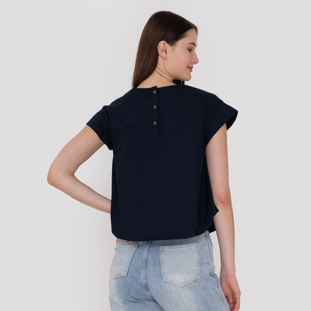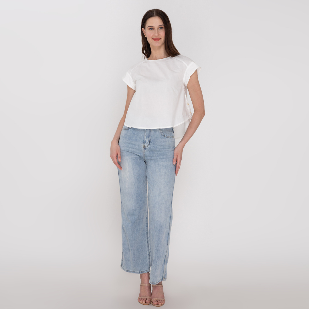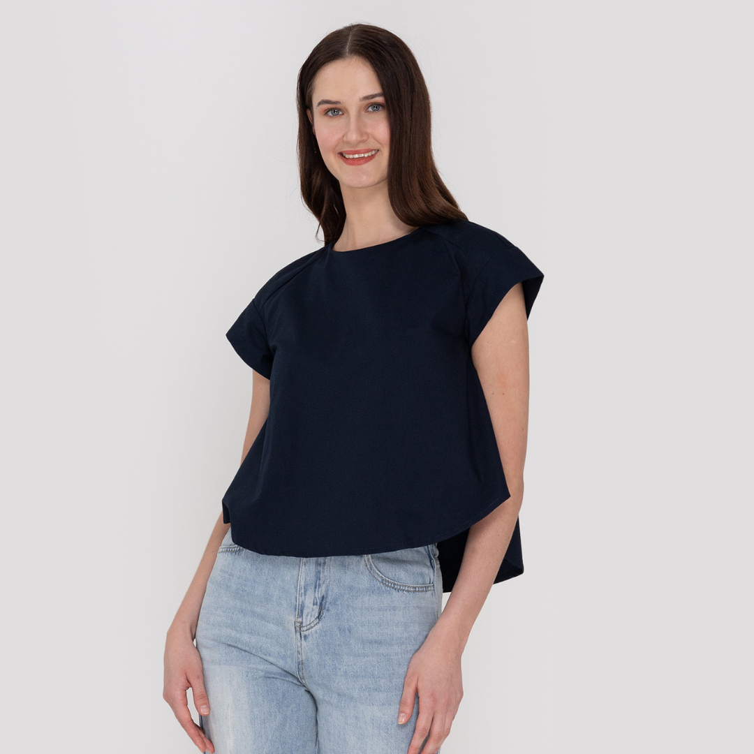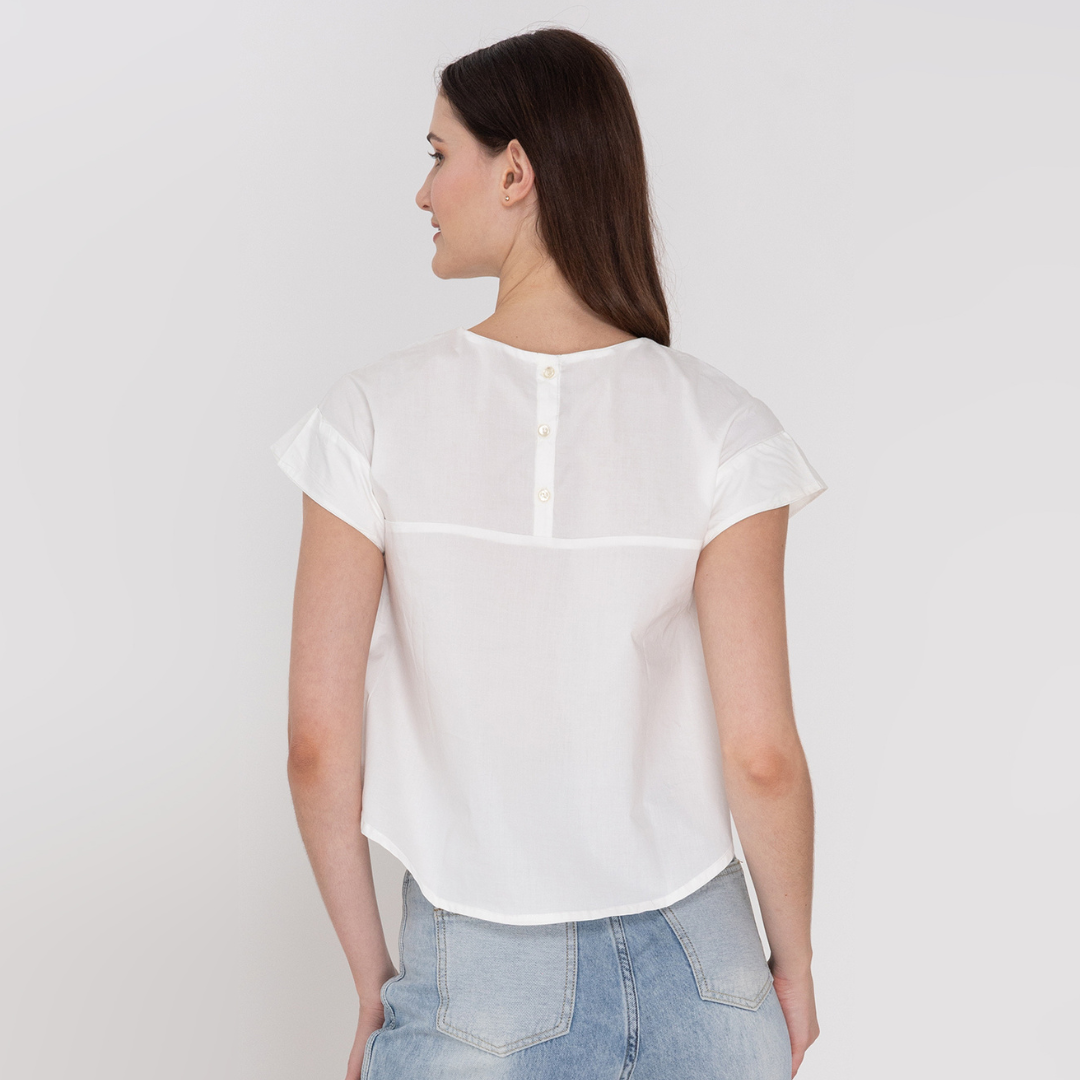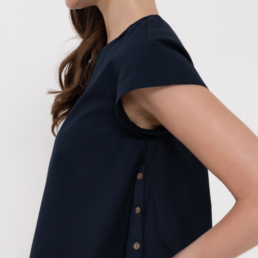 relaxed fit round neckline cap sleeves button detail at back and side square neckline 100% cotton size chart, in inches xs/s m/l xl/xxl bust 36 42 48 length 21 23 26