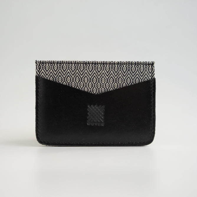 Made to keep the stuff in your pocket organized, these slim card holders will fit your IDs, cards, and bills easily.  Dimensions: 11 cm x 8 cm Genuine leather Handwoven fabric sourced from weavers in Benguet Three (3) card slots that can fit two cards each Crafted and stitched in Marikina, Philippines