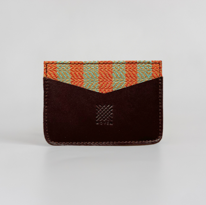 Made to keep the stuff in your pocket organized, these slim card holders will fit your IDs, cards, and bills easily.  Dimensions: 11 cm x 8 cm Genuine leather Handwoven fabric sourced from weavers in Benguet Three (3) card slots that can fit two cards each Crafted and stitched in Marikina, Philippines