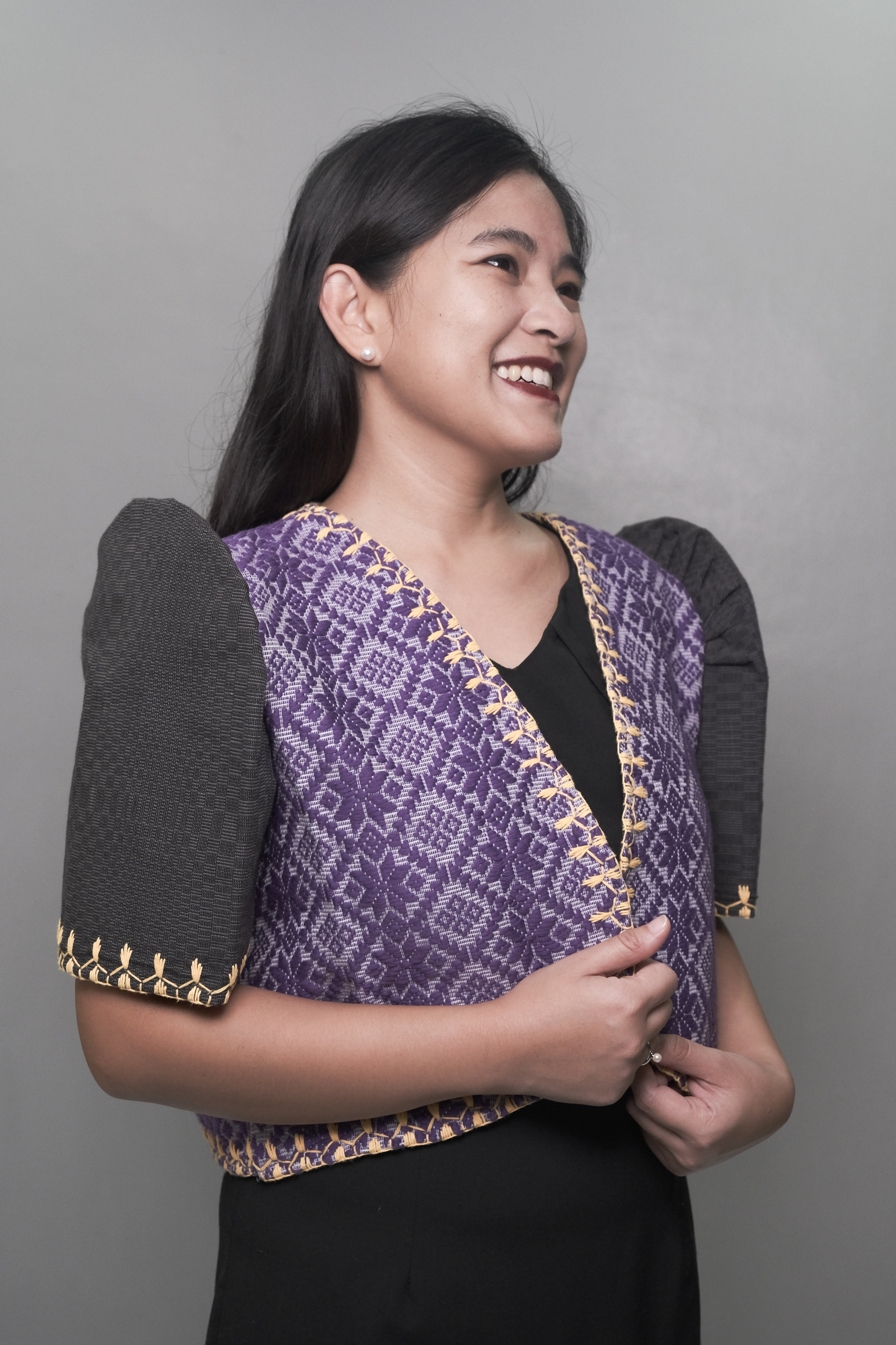 The Purple Pinilian bolero with Binakol sleeves and yellow Itneg embroidery is  a balance of statement and versatility, part of our Modern Filipiniana Collection. This bolero pairs easily with dress, skirt or trousers.