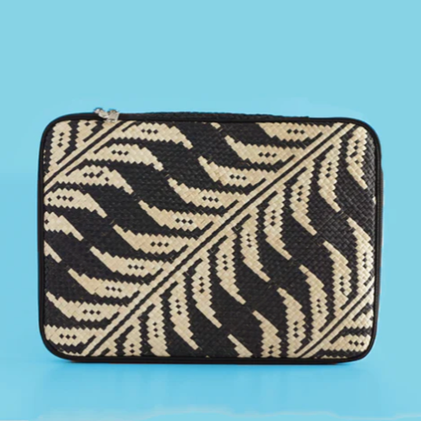 Handwoven and embroidered banig YKK zipper Interior padded with foam Garters on bottom corners to keep your laptop secure Inner pocket for papers and other small items