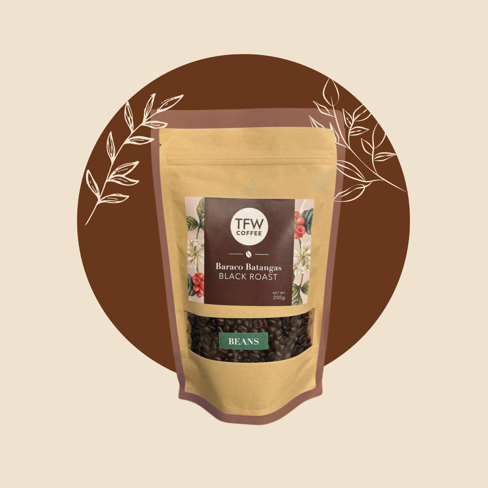 Are you ready for a coffee experience like no other? Look no further than TFW Coffee, where we've sourced the finest coffee beans from the local coffee farms of Lipa, Batangas. Our brand takes pride in bringing you the rich and authentic flavors of this picturesque region, celebrated worldwide for its exceptional coffee. Black Roast (Beans): When roasted, these beans give off a rich and strong aroma. The TFW Black Roast Coffee Beans are perfect for those who enjoy deeper and darker flavors and are perfect to start your day strong. Benefits: High source of antioxidants - Antioxidants help fight free radicals, boost your immune system, and support overall health. Net Wt: 200 grams Recommended Brew Ratio: 1:1 Can be brewed with an At-home coffee maker, Espresso machine, French press, and more