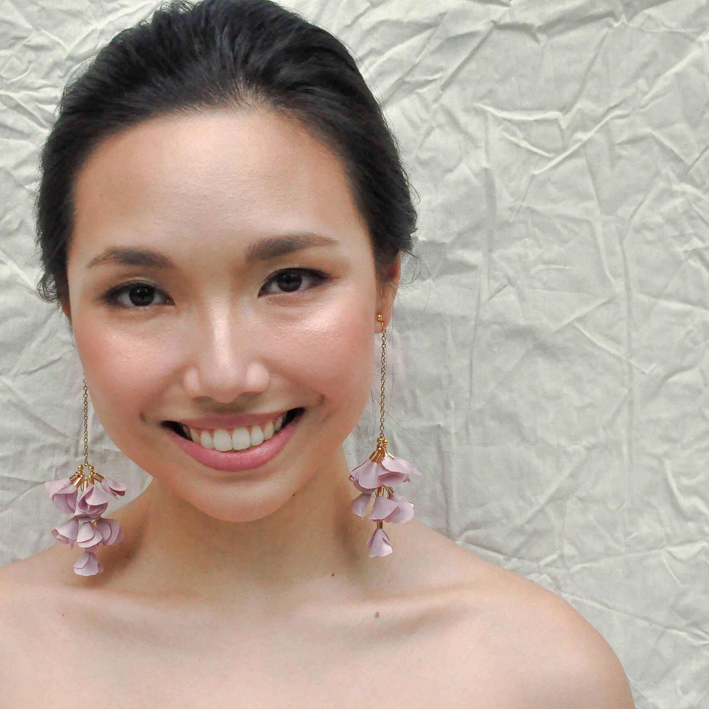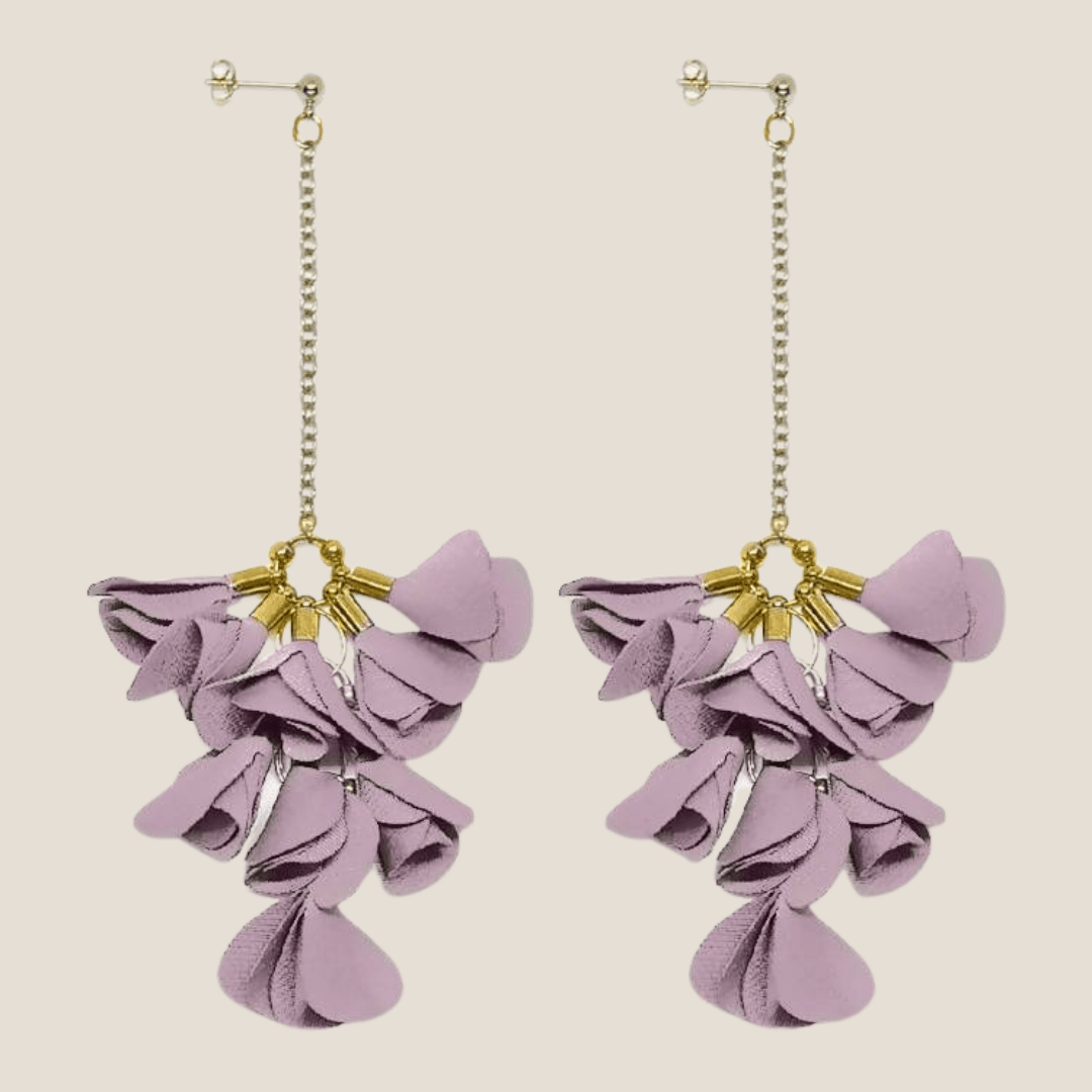 Handmade silk flower drop earringsComponentsGold-plated studsSilk flowersDimensions4.5 inches in lengthLightweightDue to the handmade nature of our earrings, lengths and sizes may vary but very minimal.