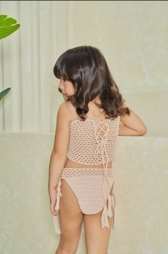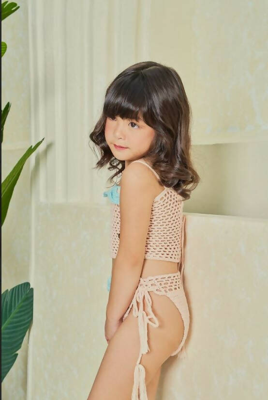 Wait no more for classy and stylish swimwear for your summer vacation. Kateri’s Bonita Peach Swimwear Set is your swim partner to be fabulous even on the wave of summer heat. It’s a custom fit that your kids will surely confidently wear. This crochet swimwear set has a delicate design on its top with an adjustable strap on the back, and the bottom can be adjusted to fit your little ones.
