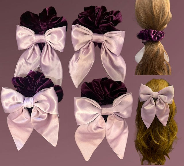 Chic medium size satin silk bows with scrunchies duos nice gifts for the Holiday  season