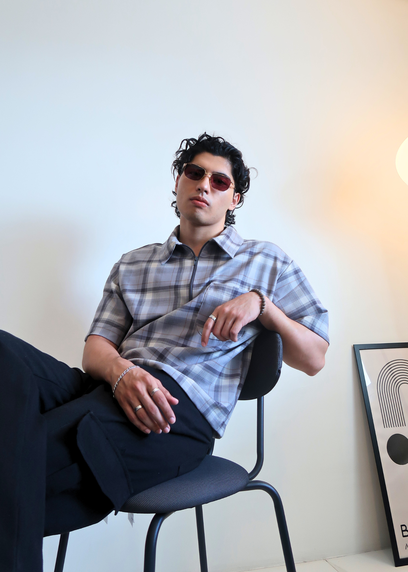 HOLIDAY25 Slightly oversized, boxy fit Half zip front closure Chest pocket Straight hem Made from light, smooth wool