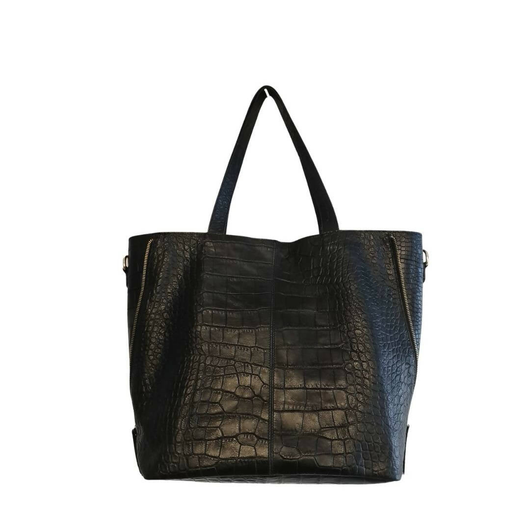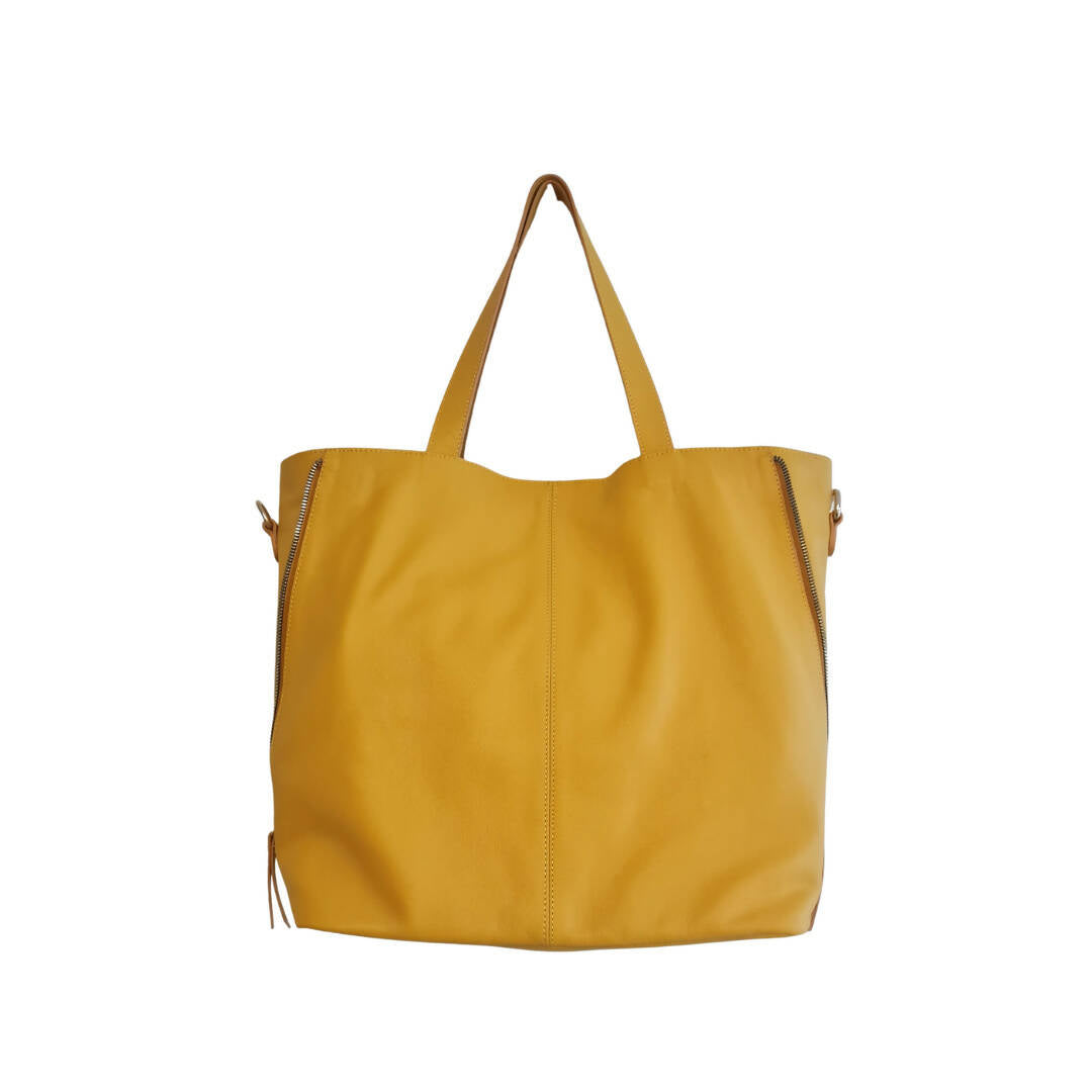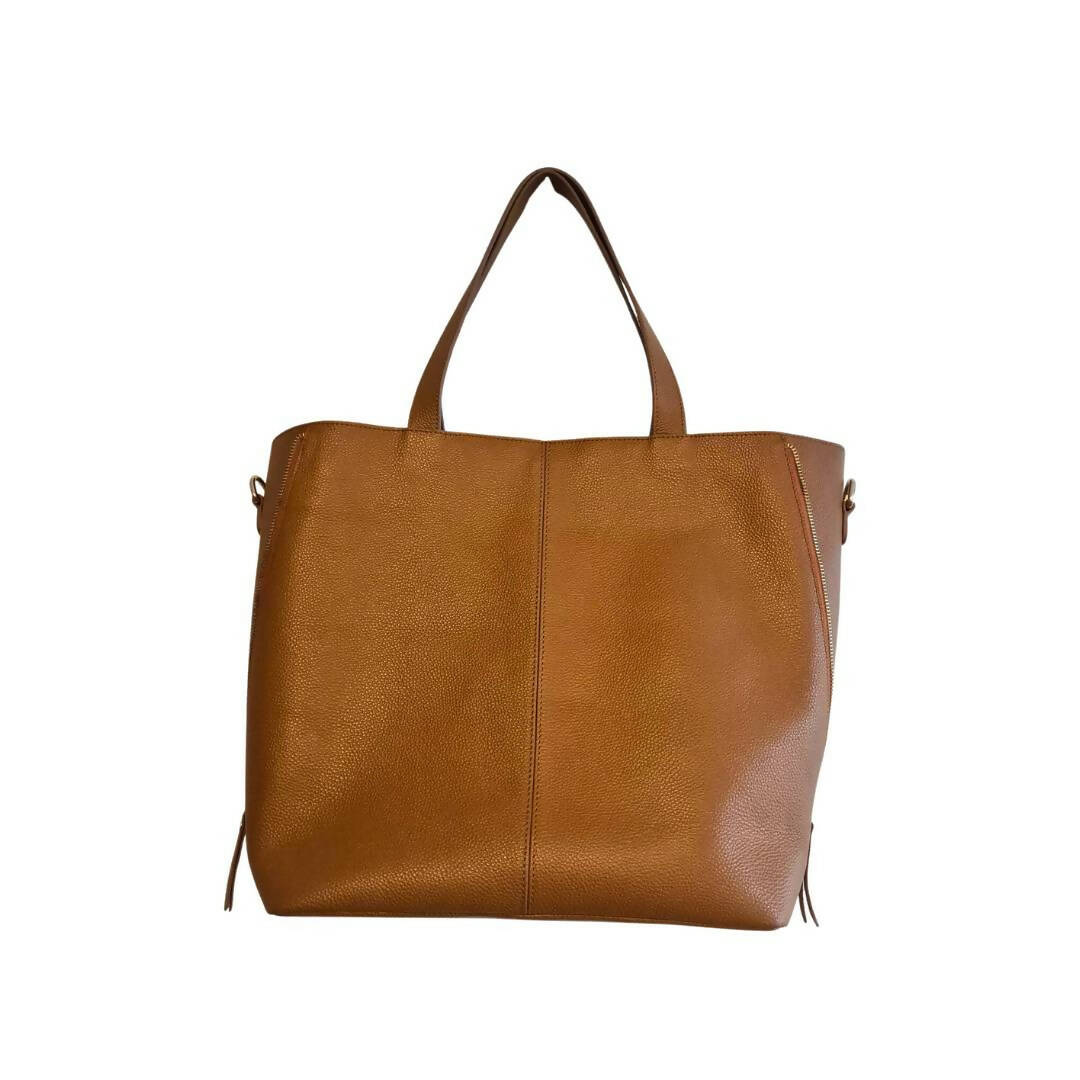 Details: Made of 100% Leather With Lining With Side zippers for expandability With Detachable strap With Interior pockets Dimensions: (inches) Length: 14 Width: 20 Depth: 6 Handle Drop: 12 Crossbody Strap: 45