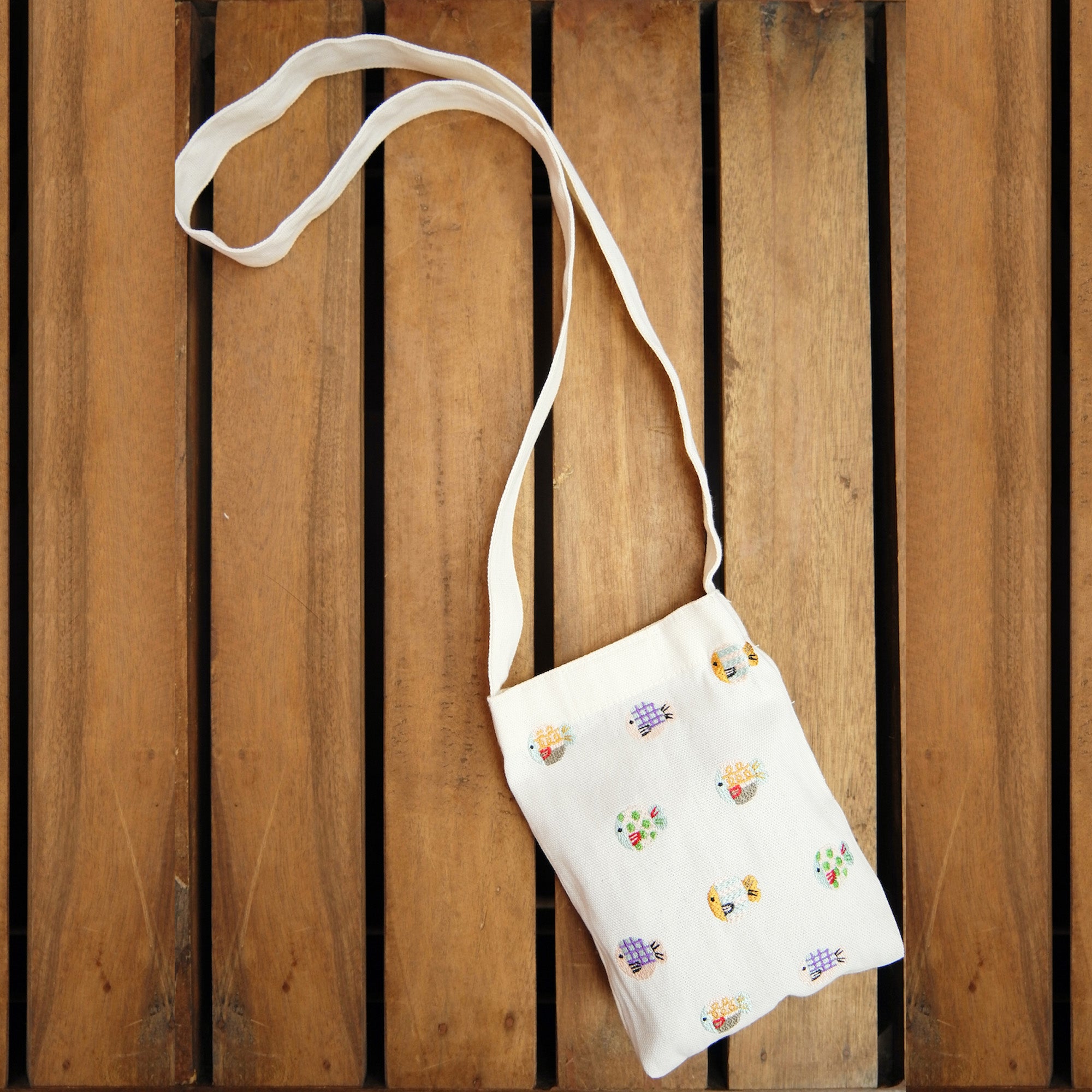 Bubble Fish on Natural Canvas Mini Sling Bag