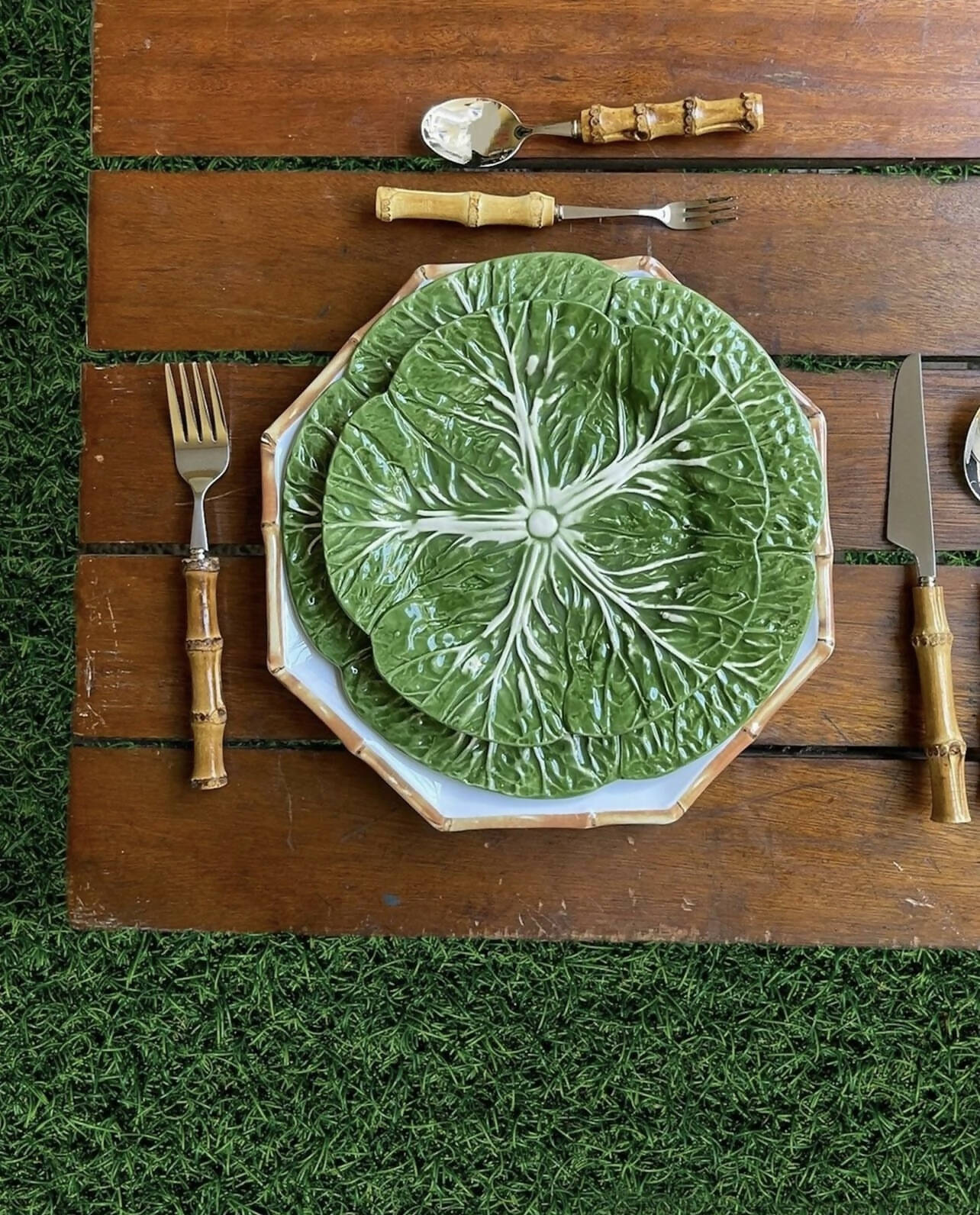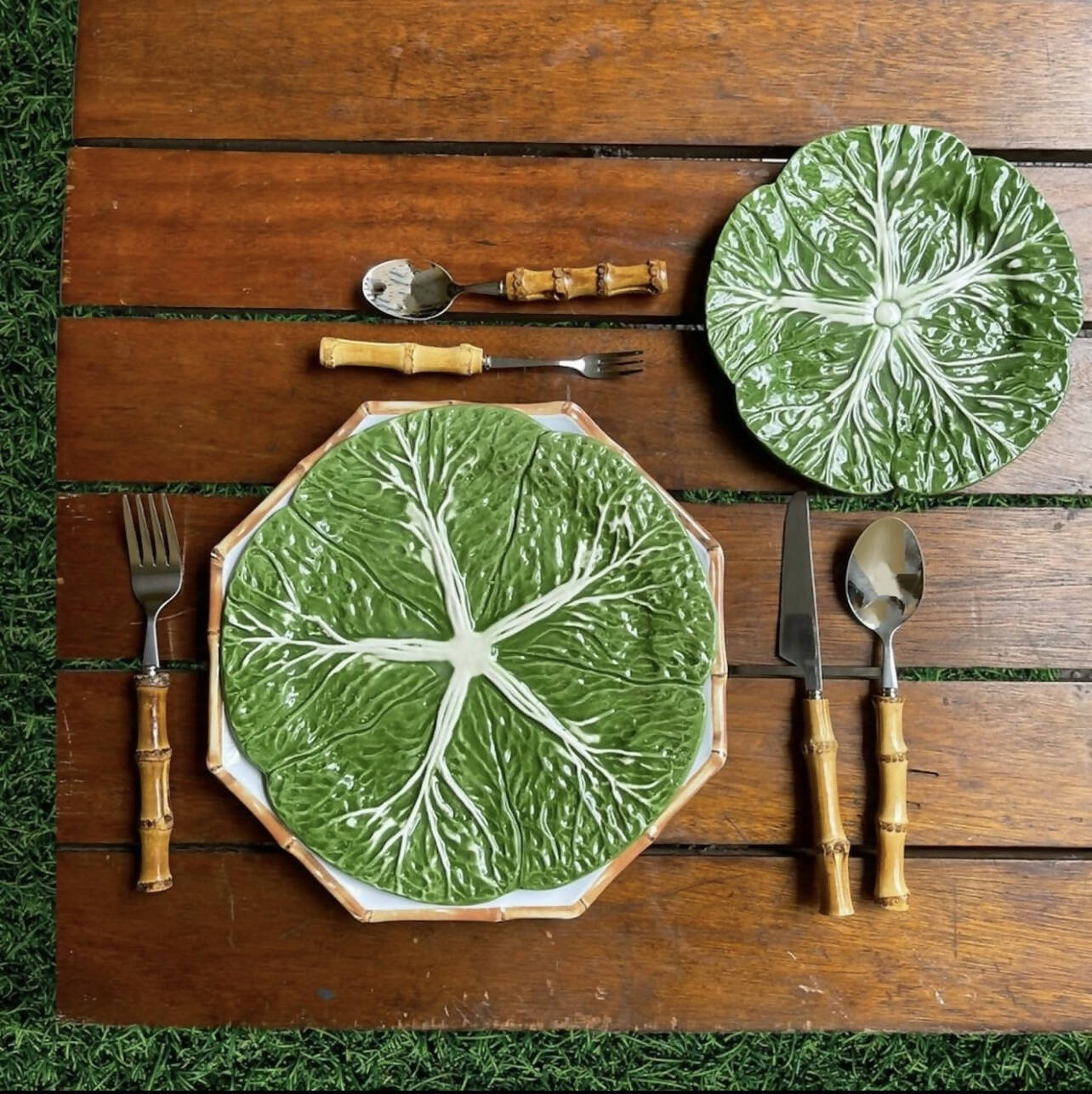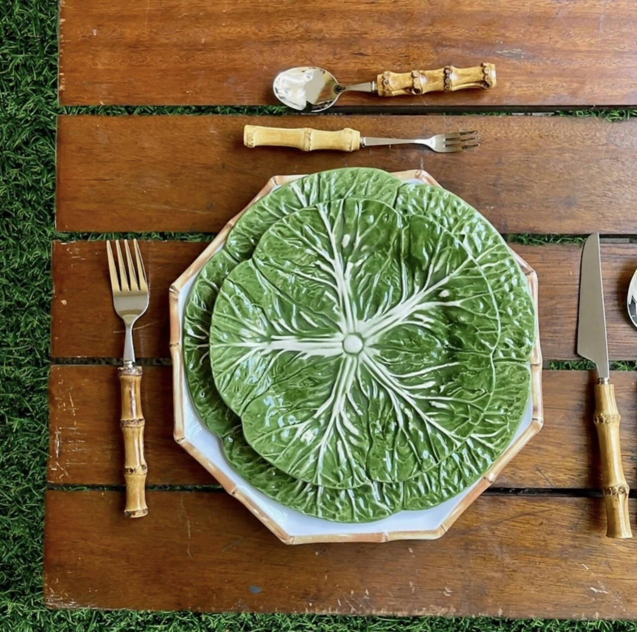Iconic cabbage plate set for a gracious dining. Especially beautiful when paired with the bamboo utensils for a full on elegant setting 🌱