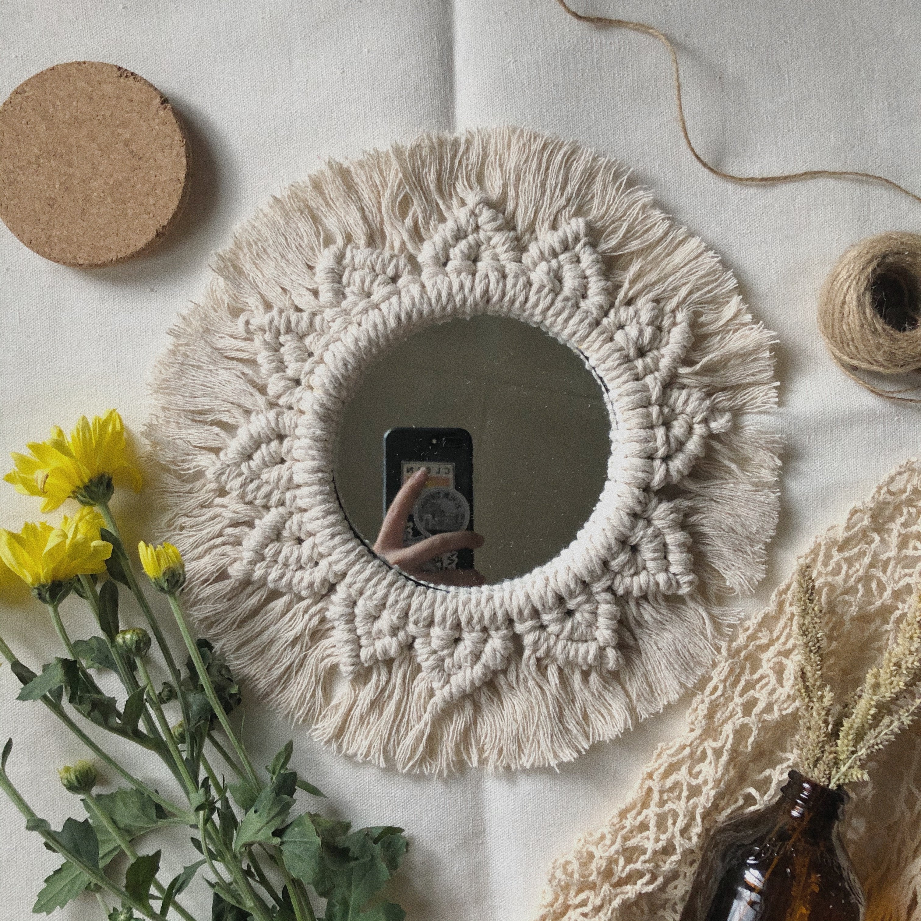 • Bohemian inspired Macrame mirror.