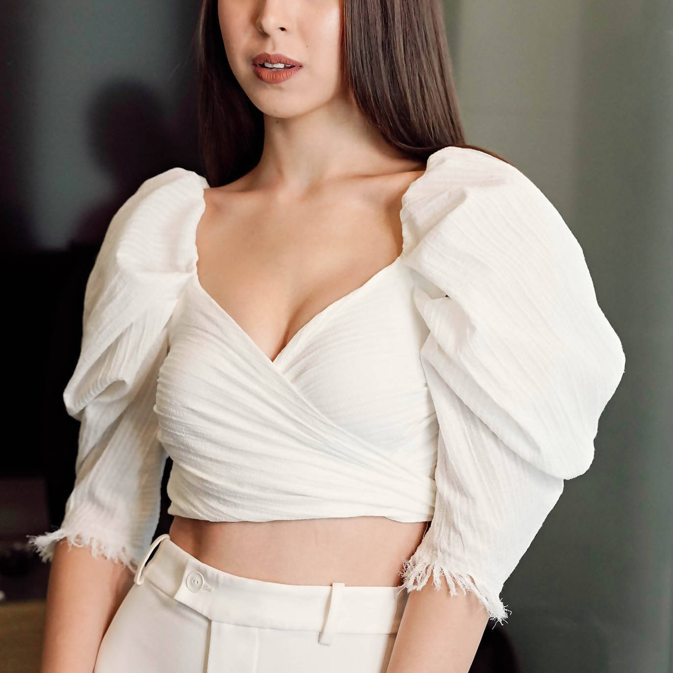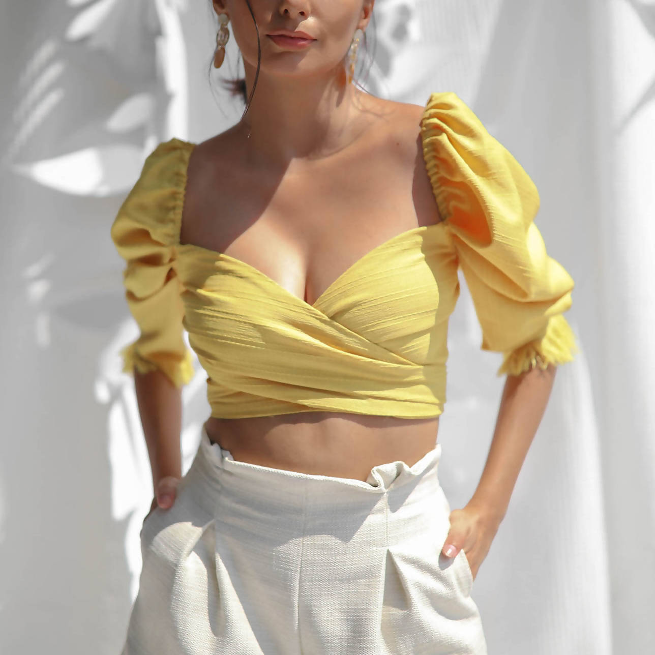 Ethically made and sustainably designed, Jeanjaquet's Camisa Reversible Top is a beautiful, feminine piece tailored to all occasions. It's a two-way top with handmade fringe detail made with textured crepe, and can be worn tied, wrapped, reversed, sleeves up or off shoulder. Fully lined.