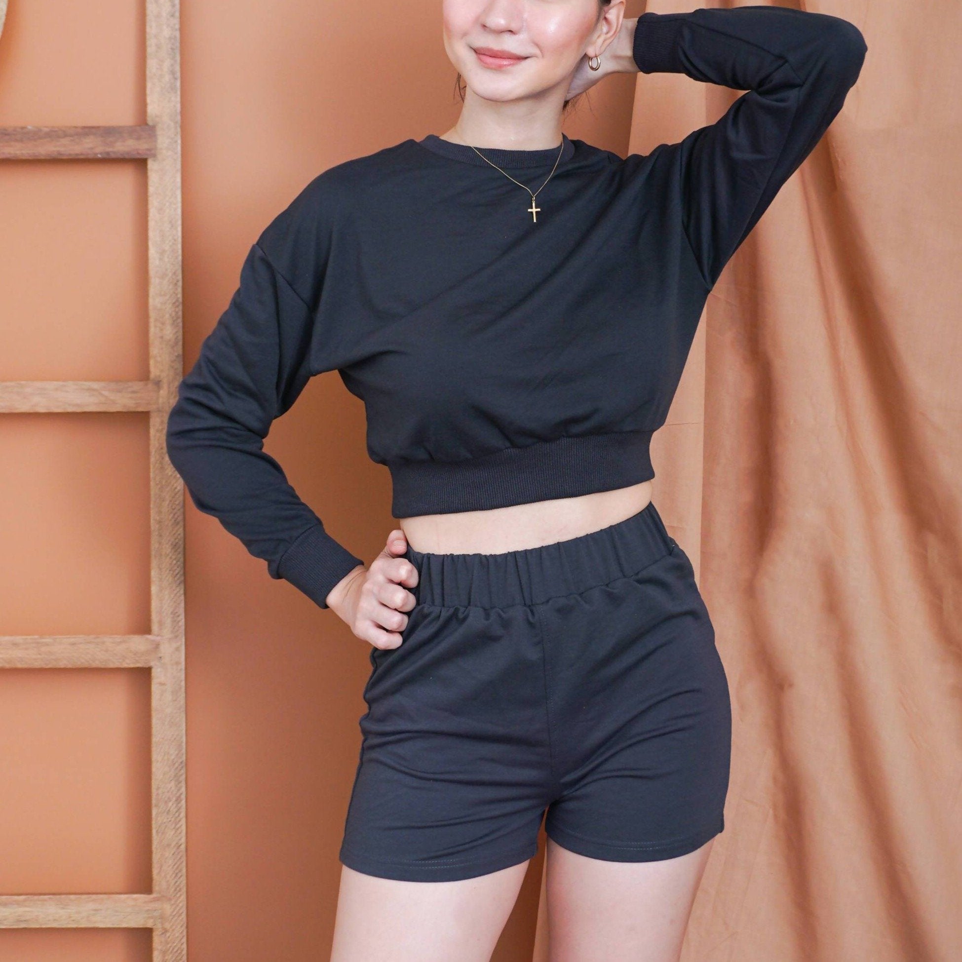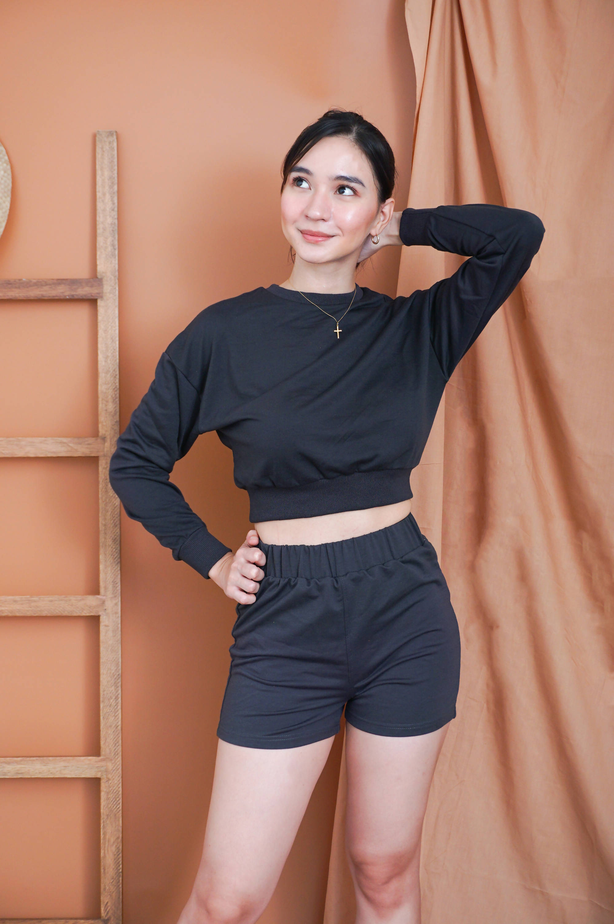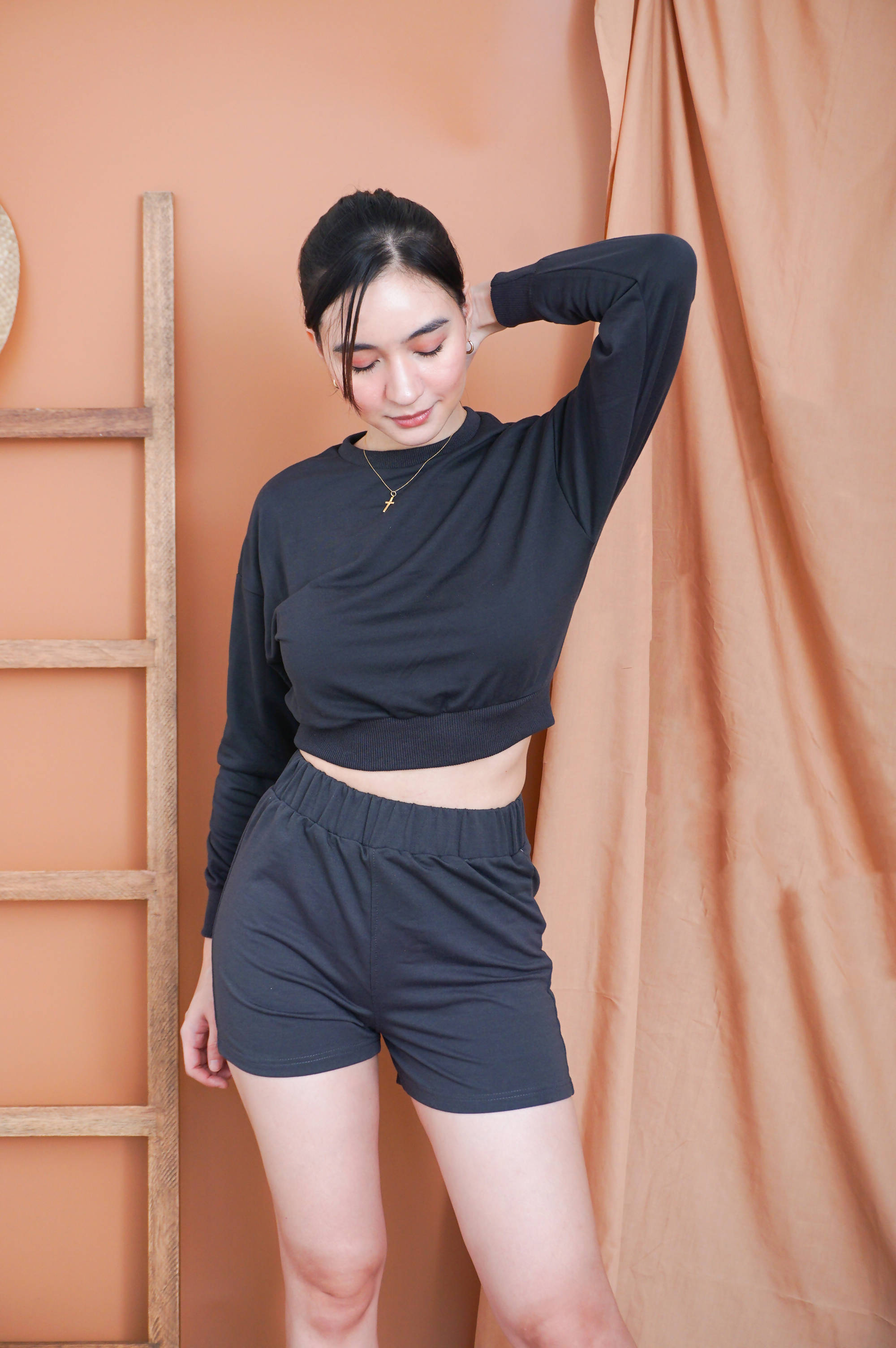 Comes with Long sleeves & crop top with high waisted drawstring shorts