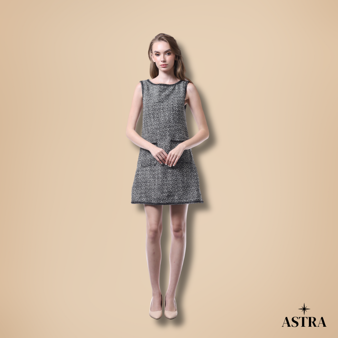 Classic and refined, the Celeste Boat Neck Dress channels timeless sophistication. Crafted in tweed, it carries texture and structure, while the boat neckline adds subtle elegance. A polished choice for office days or refined evening gatherings.