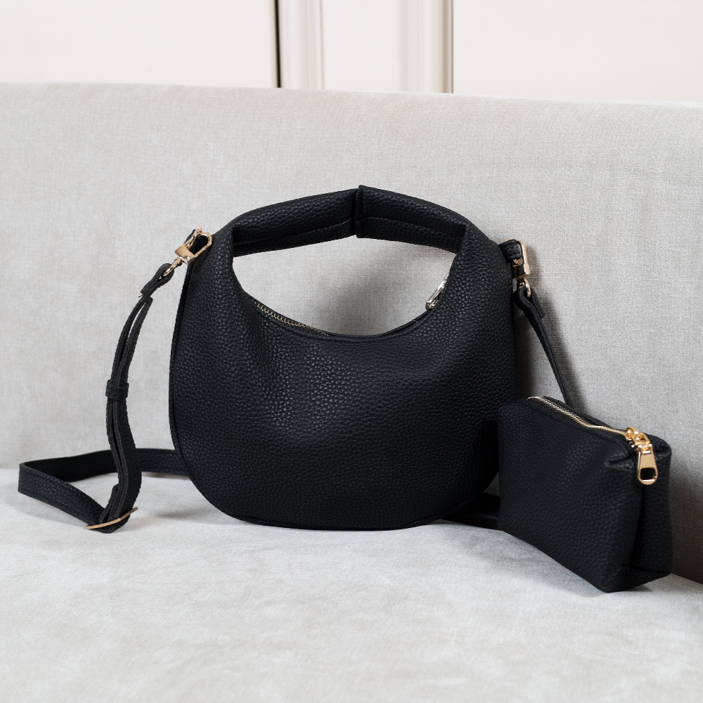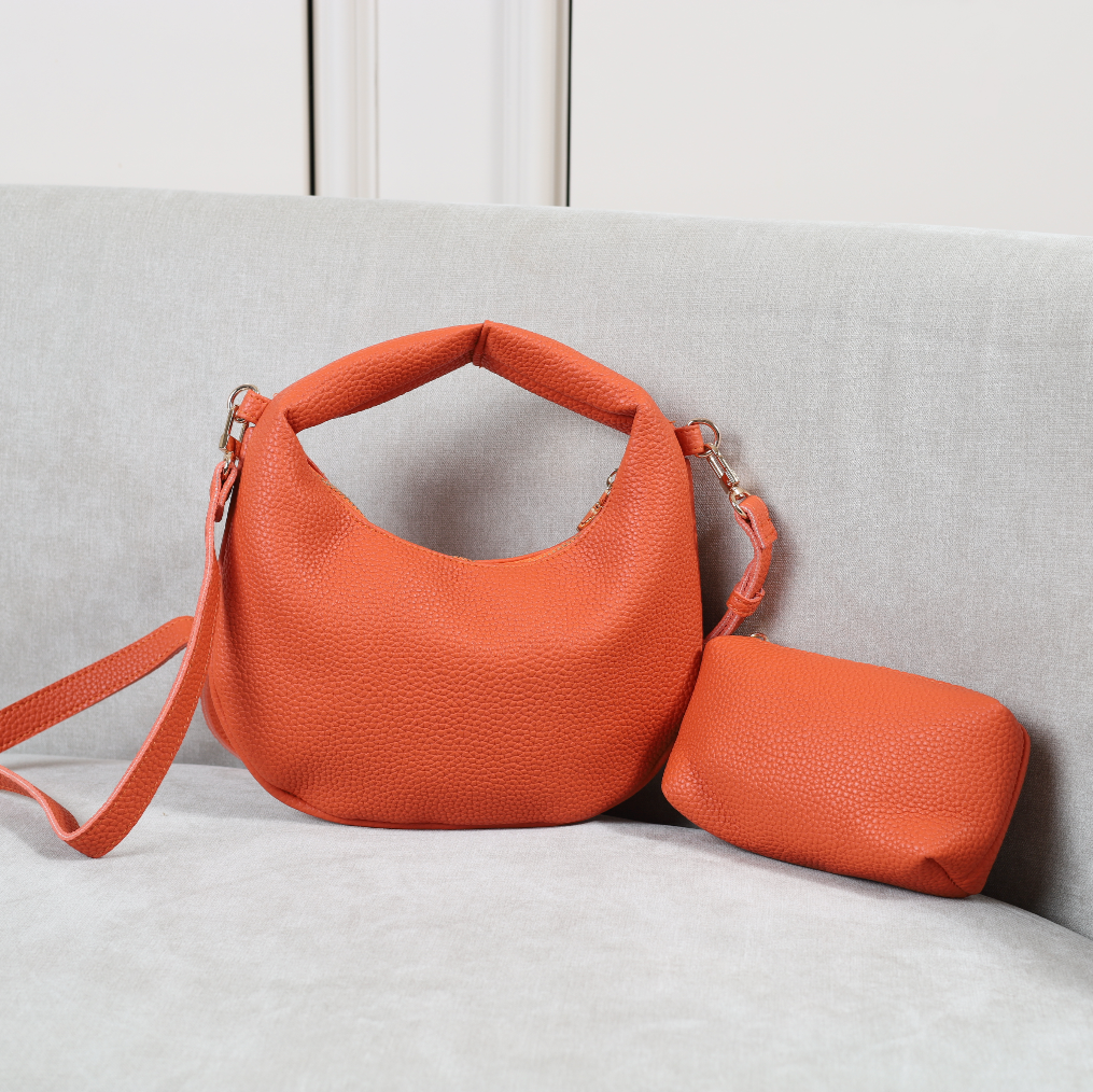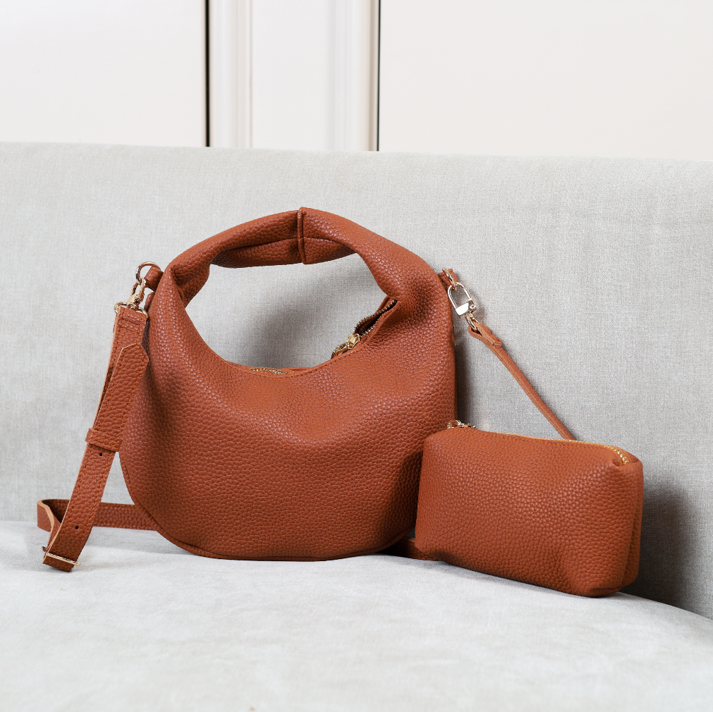 The Charlie Handbag & Sling Bag is your new go-to for elevated everyday wear. Crafted from premium textured leather, features a modern crescent-shaped handbag with a soft top handle, adjustable strap for crossbody convenience. Paired with a sleek matching pouch, perfect for essentials or makeup.