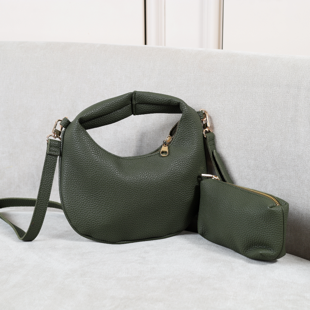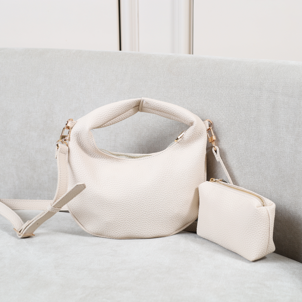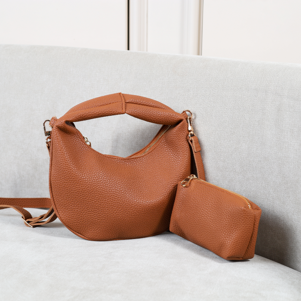 The Charlie Handbag & Sling Bag is your new go-to for elevated everyday wear. Crafted from premium textured leather, features a modern crescent-shaped handbag with a soft top handle, adjustable strap for crossbody convenience. Paired with a sleek matching pouch, perfect for essentials or makeup.
