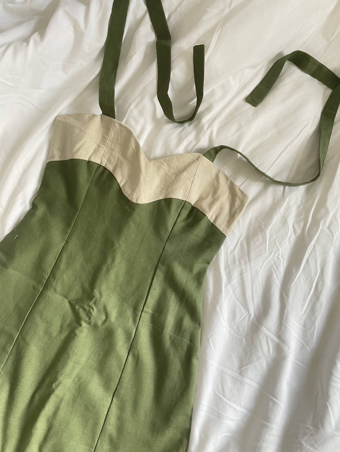 Chasing the sea dress is a duotone dress that features a wave neckline, two-side pockets, and an adjustable tie strap carefully handcrafted by artisans.