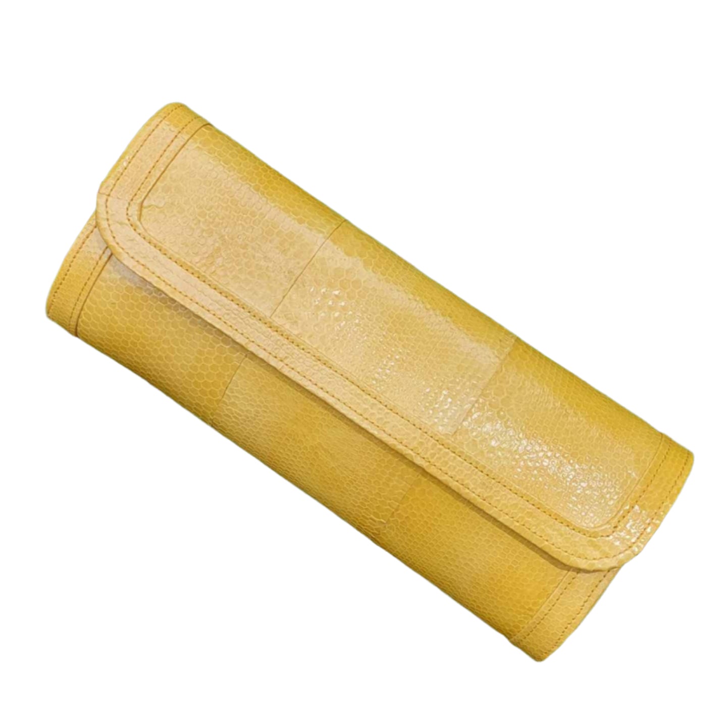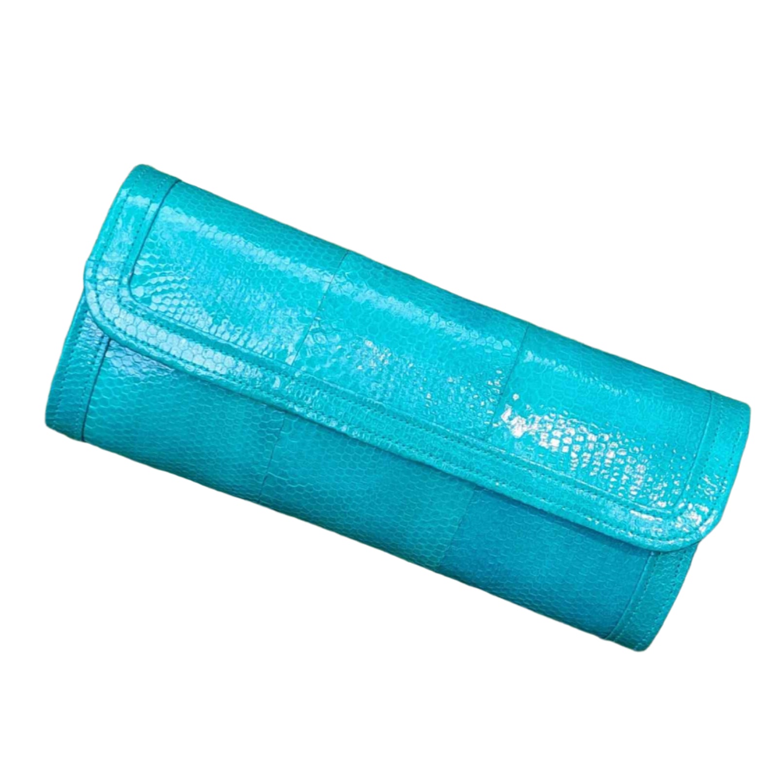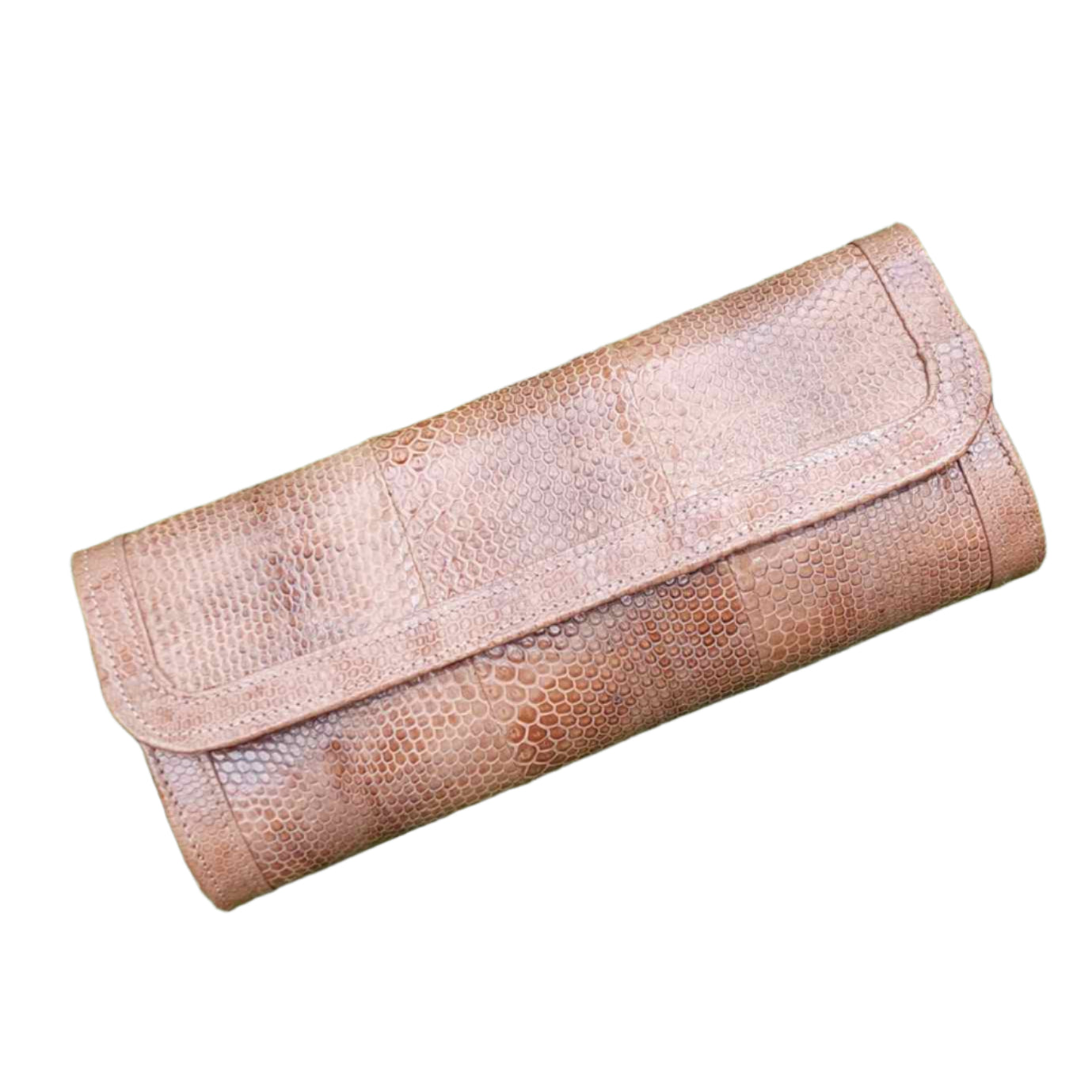 This is classic simplicity at its finest.  Simple roomy snakeskin clutch.