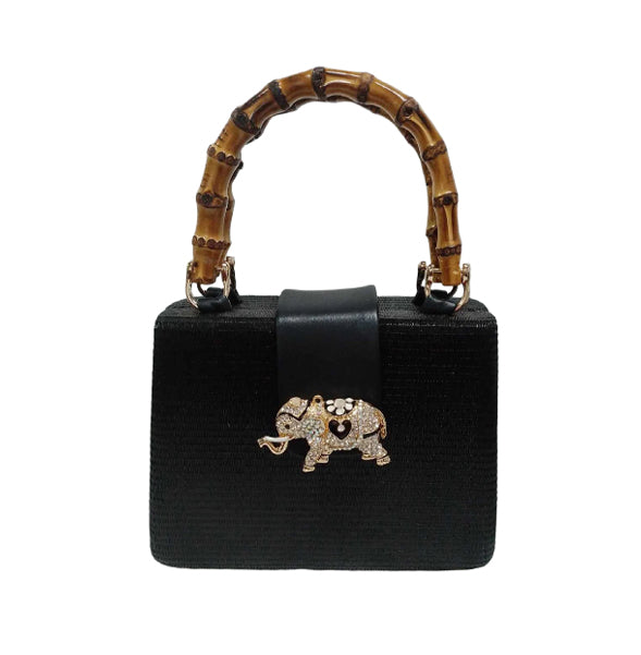BUNTAL KNITTING WITH LEATHER FLAP BAMBOO HANDLE ELEPHANT ACCENT AND CHAIN