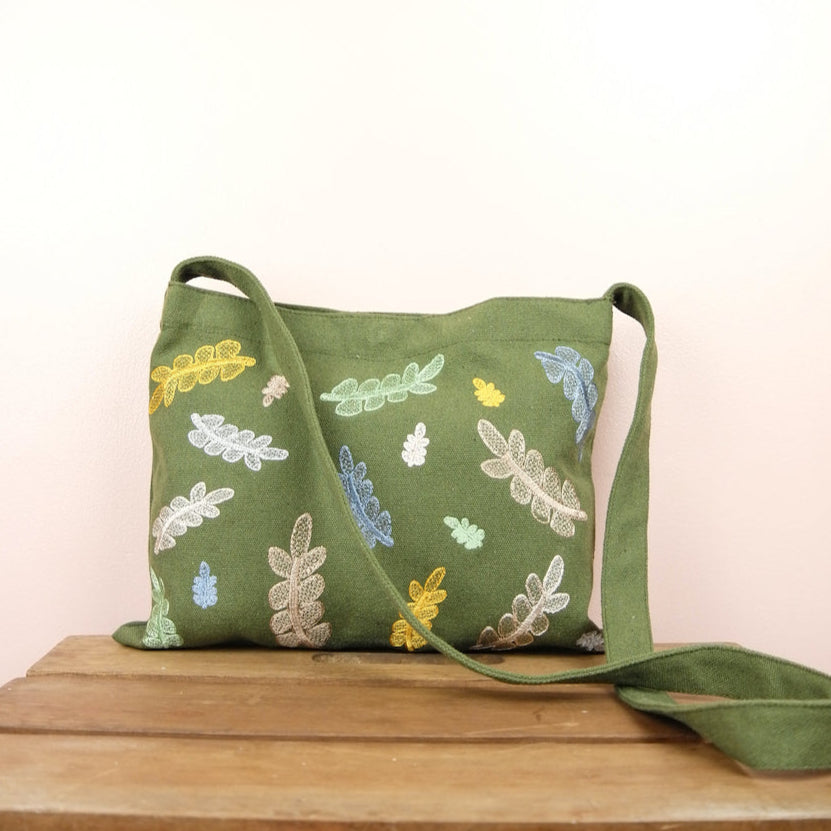 Colorful Leaves on Moss Canvas Small Sling Bag