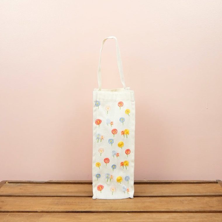 Cotton Candy Flowers on Natural Canvas Water Bottle Bag