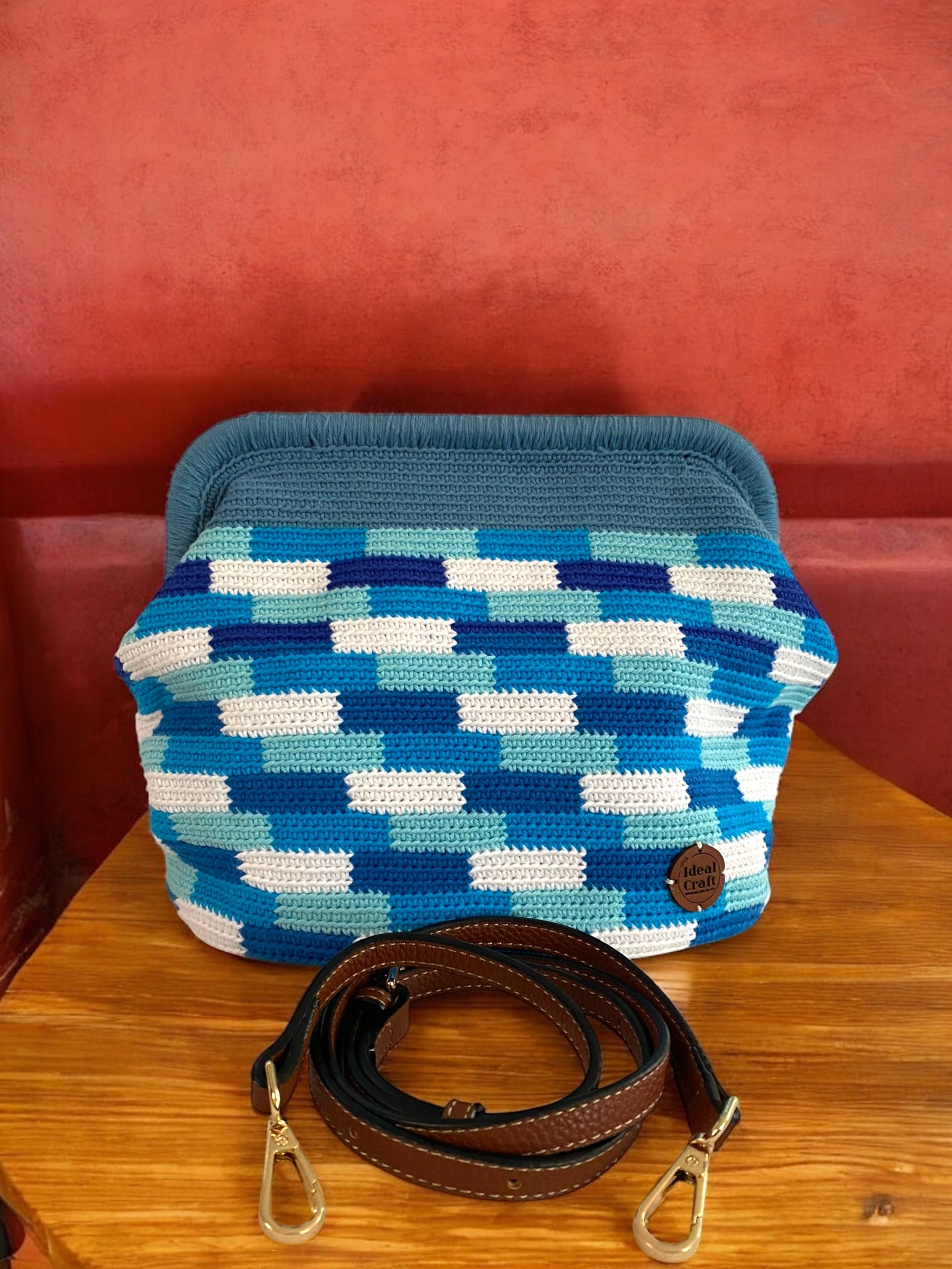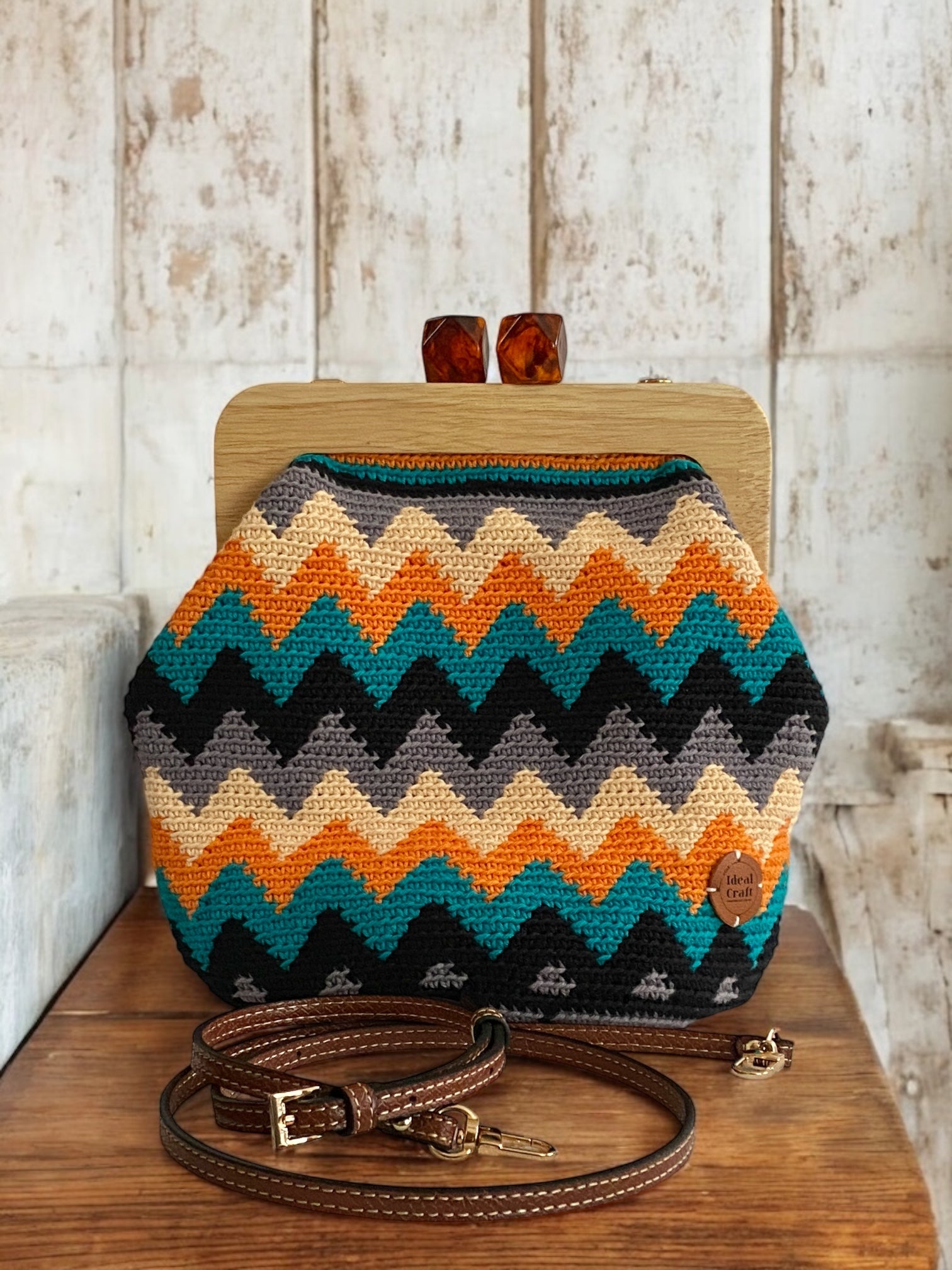 Made of Light Worsted 100% Cotton Yarn Handcrafted using the tapestry crochet method Two-in-one style : use it as a crossbody sling or handheld clutch Comes with a leather sling strap Fully lined Choose between an aluminum clasp frame or a wooden one to match your style Each piece is the result of 6-8 days of detailed crochet work Proudly Philippine made Aluminum framed measures 30cm x 17cm x 22cm Wooden framed measures 23cm x 19cm x 19cm
