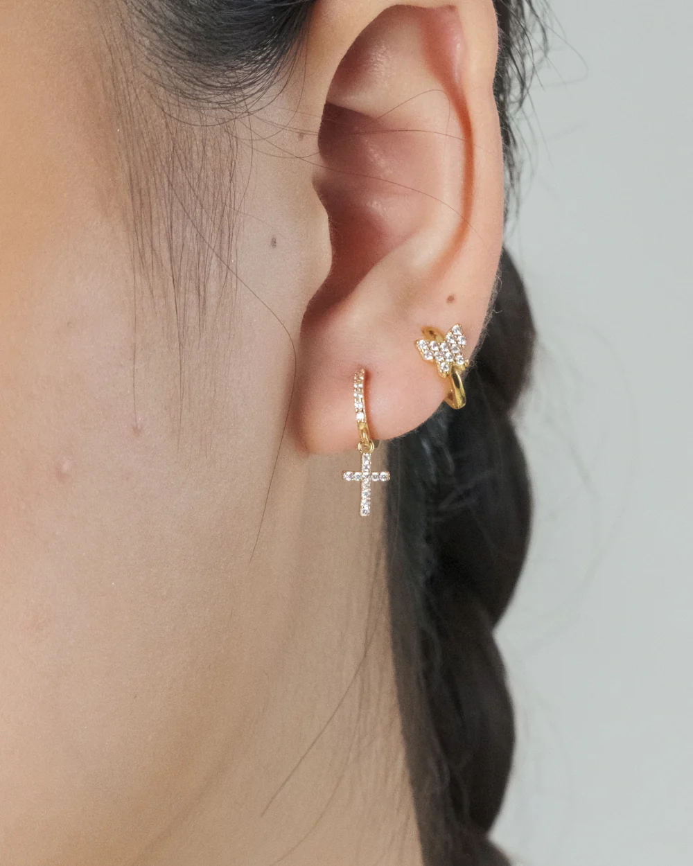 Elevate your style with our Cross Zircon Huggie earrings! Crafted from 925 silver and adorned with a sparkling cross-shaped zircon, these huggie earrings add a touch of elegance to any outfit. Perfect for everyday wear or special occasions, show your faith in a fashionable way.