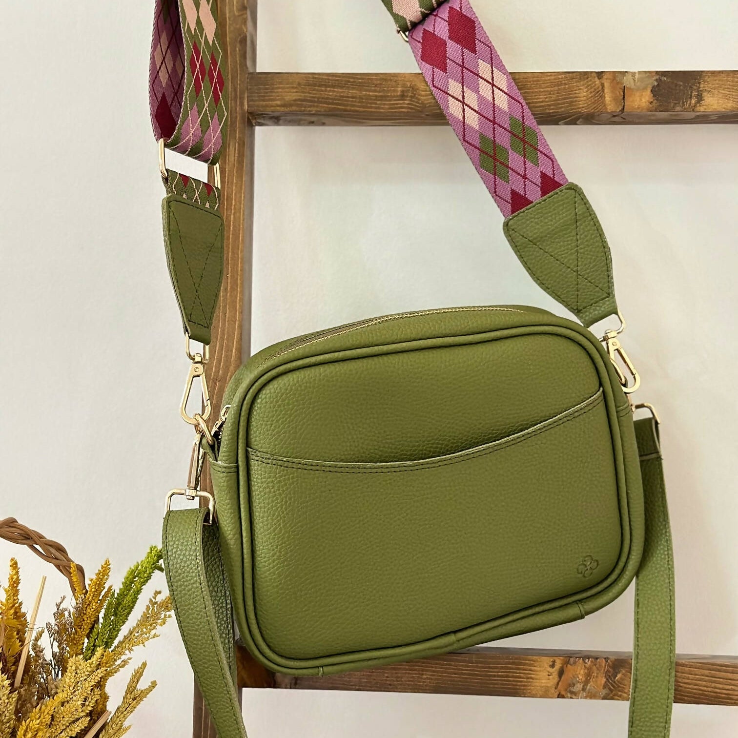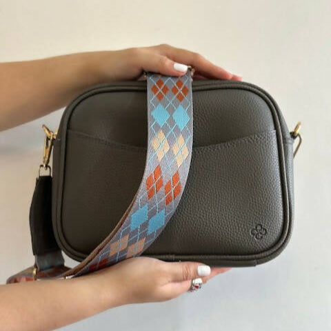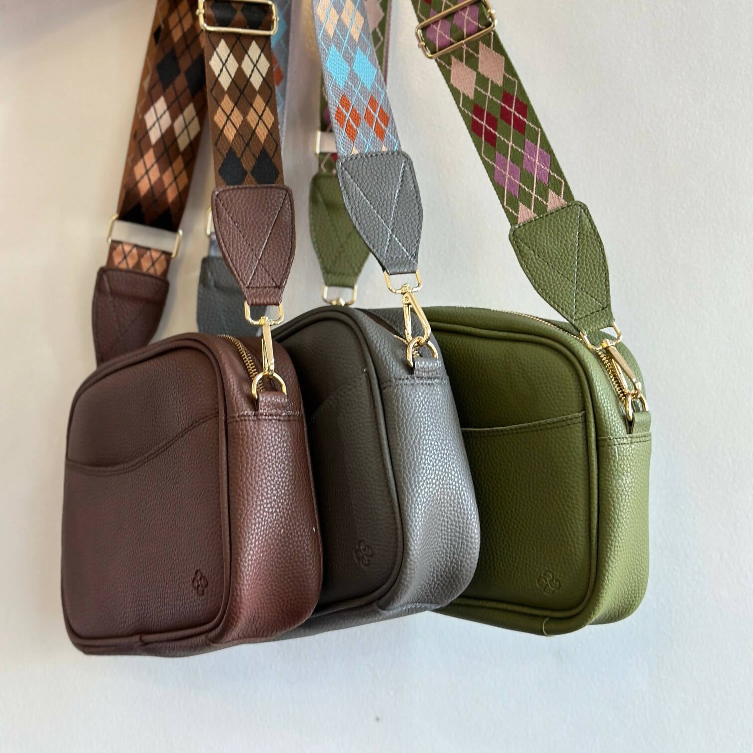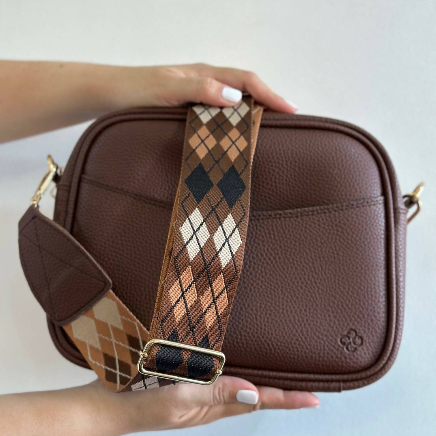 8" x 10" x 3" HLWFeatures a wide strap for maximum comfort and styleComes with 2 straps - Printed and Leather3 interior pockets1 outside slide pocketInterior lining