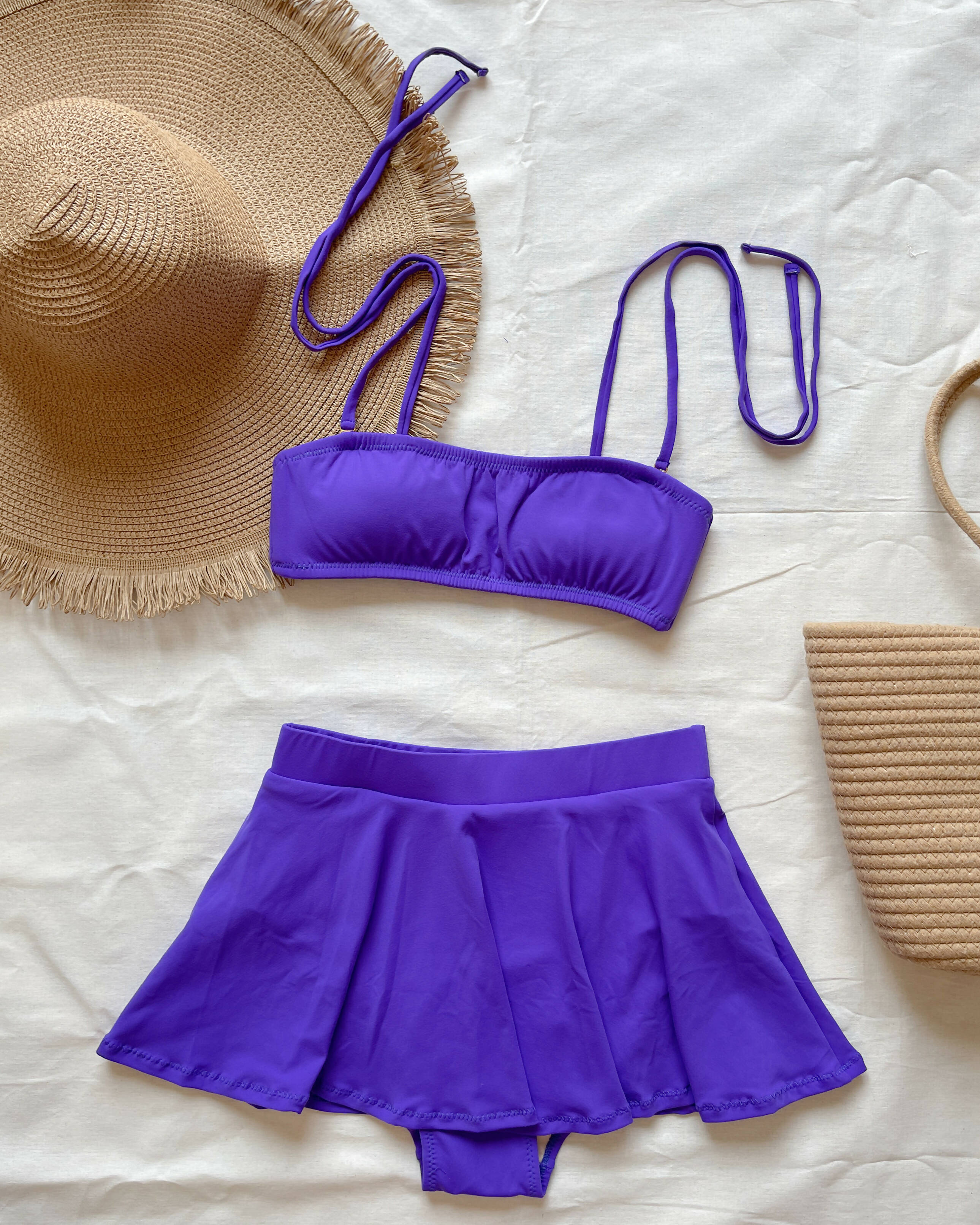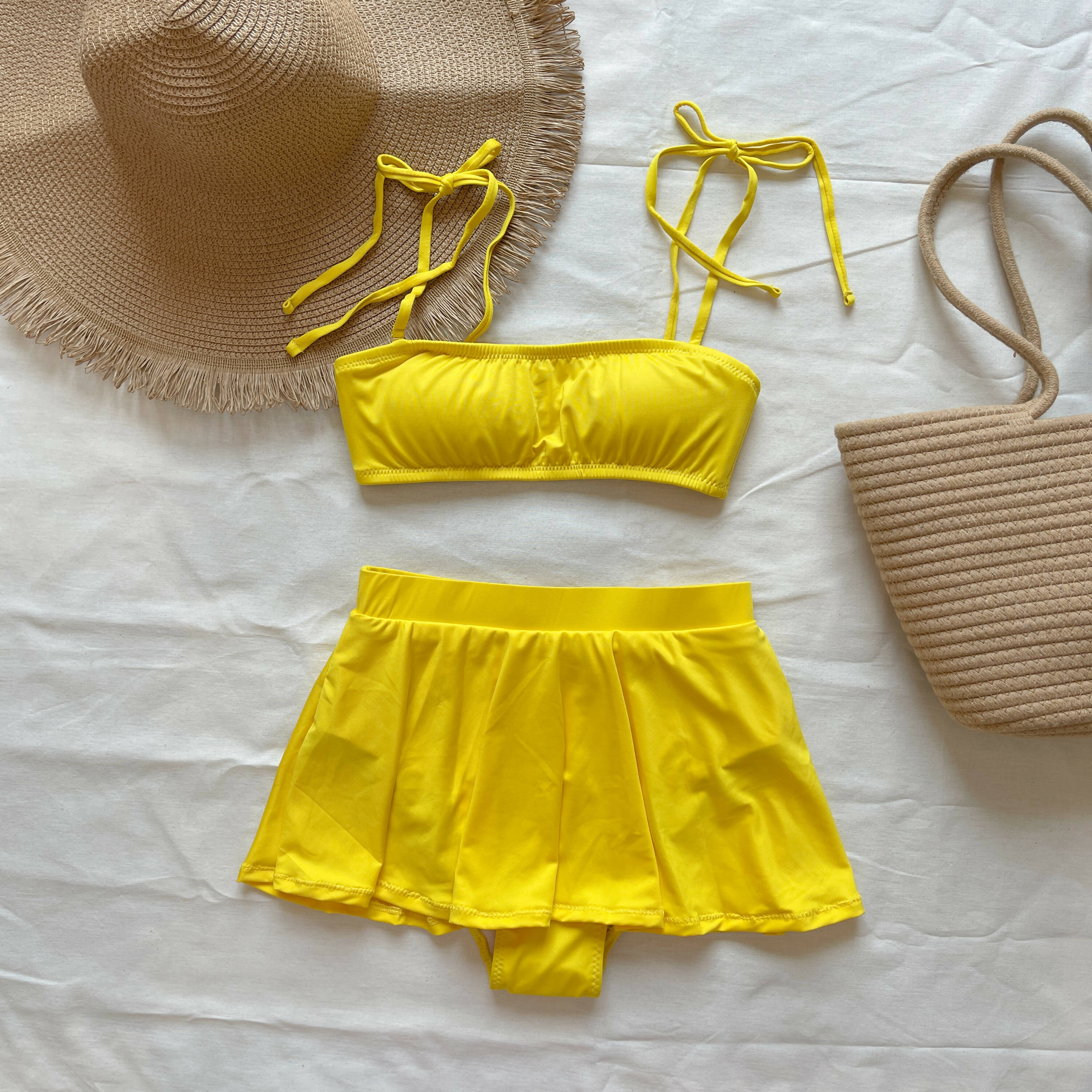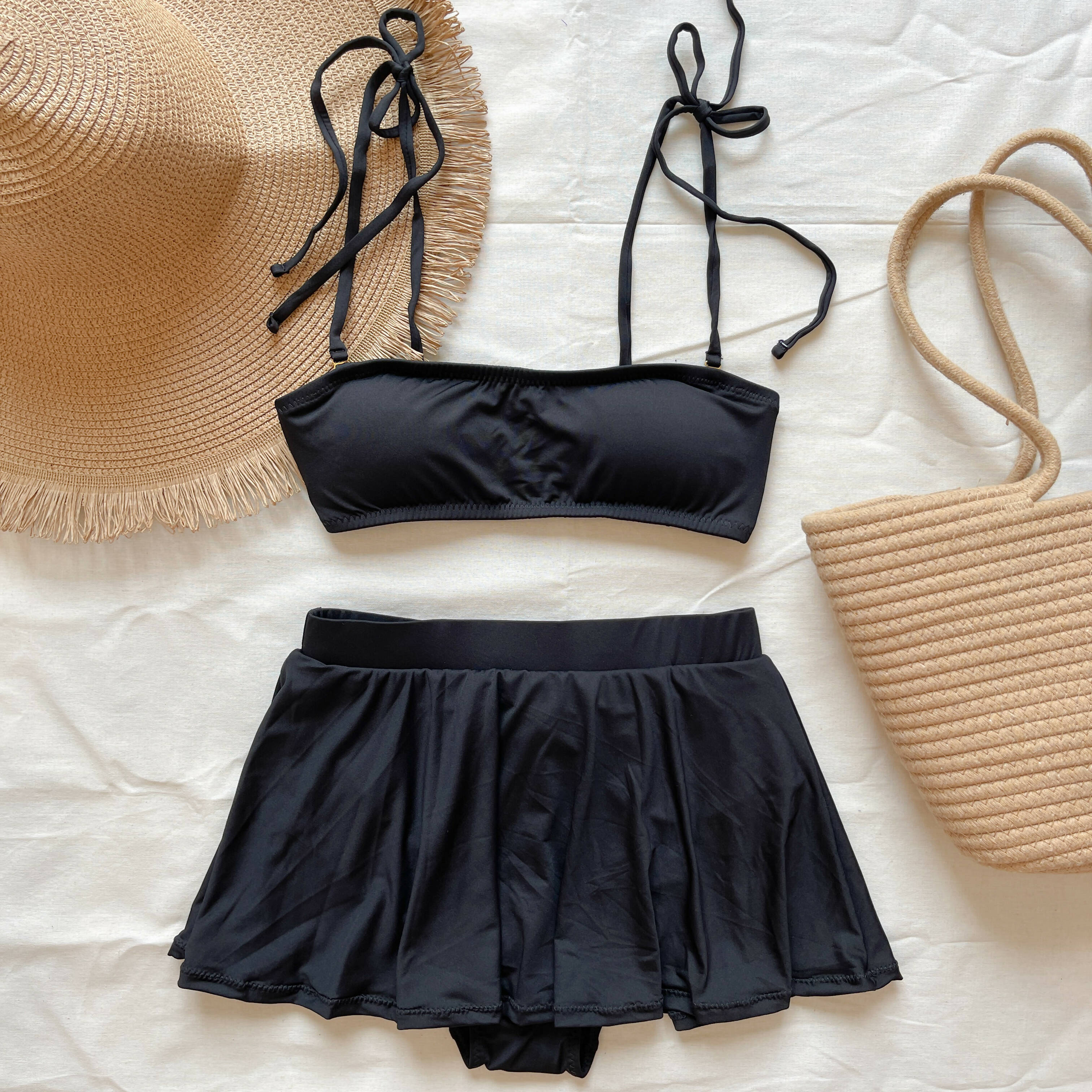 Dahlia Set is a multi-way bikini which is produced in limited pieces per size and per color. There is always no guarantee of a restock so message us if you have any questions or if you'd like us to check in-store availability :) Two-way bandeau bikini top (comes with a strap to style the top) Shoulder tie strings Comes with removable soft pads High waist skirt with built in bikini Thick waist band Mid cheeky bottom coverage Fully lined Care instruction: hand wash cold, do not bleach, do not iron Size Guide   S M L XL Bust 30-32 “ 33-36 “ 37-38 ” 39-40 “ Waist 24-26 “ 27-29 “ 30-32 “ 33-34 “ Hips 33-35 “ 36-38 “ 39-40 ” 41-42 “ *Tip: if you are in between sizes, size down if you are petite and size up if you are taller*Colors may slightly vary depending on your screen / monitor