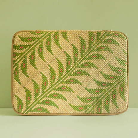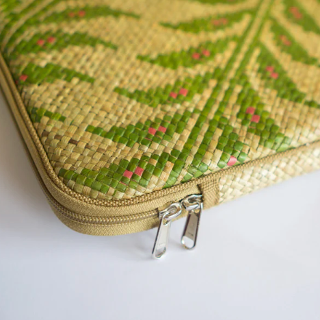 Handwoven and embroidered banig YKK zipper Interior padded with foam Garters on bottom corners to keep your laptop secure Inner pocket for papers and other small items