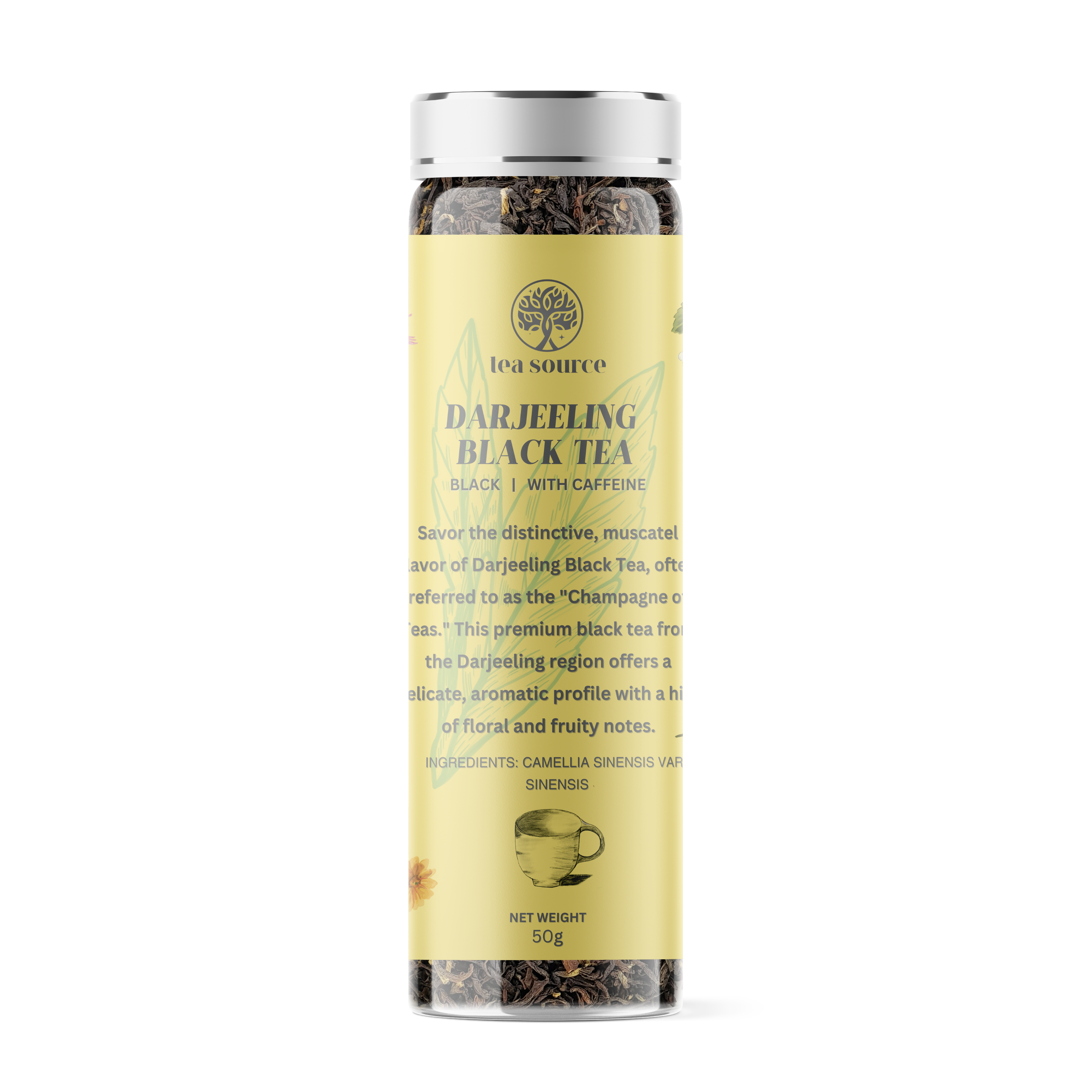 Darjeeling Black Tea, often referred to as the ""Champagne of Teas,"" is a refined and aromatic black tea known for its delicate, muscatel flavor. Grown in the misty hills of the Darjeeling region in India, this tea offers a unique combination of floral notes and subtle astringency, making it a favorite among connoisseurs. Its elegance and complexity make it perfect for those seeking a premium black tea experience.