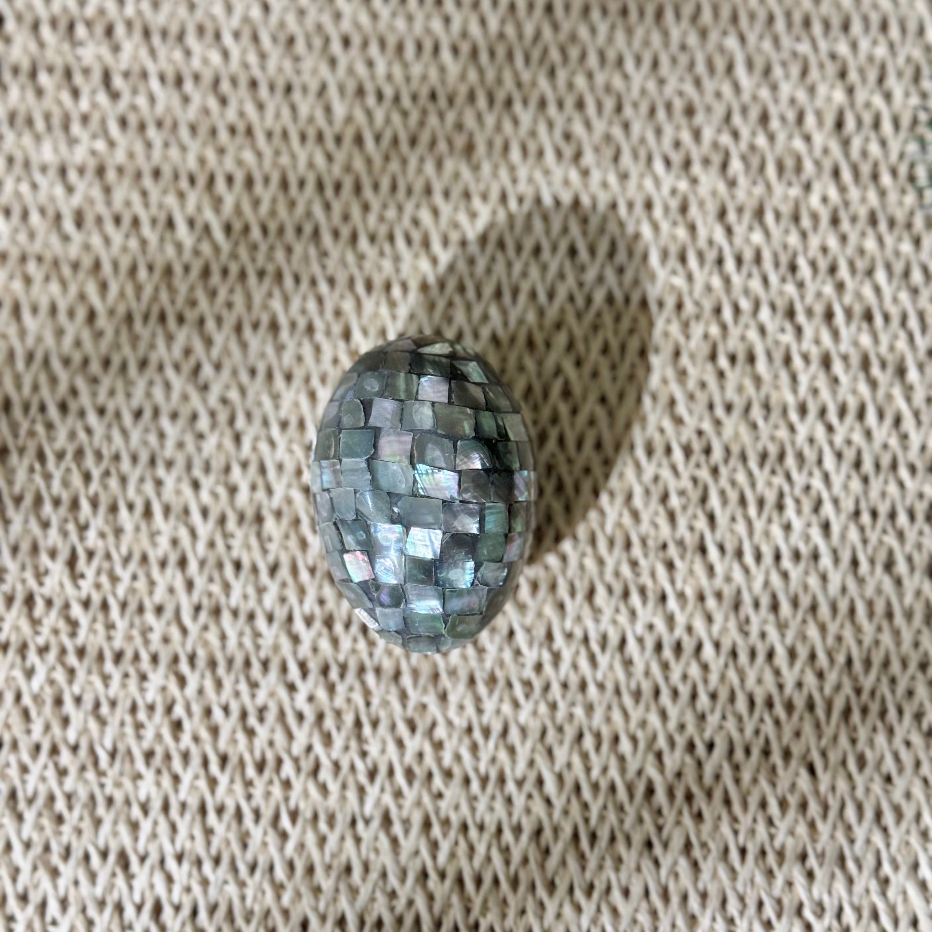 A modern take on timeless elegance, this handcrafted egg-shaped decor piece is made with genuine mother of pearl shell. Its natural iridescence and smooth finish make it a stunning accent for shelves, consoles, or coffee tables.