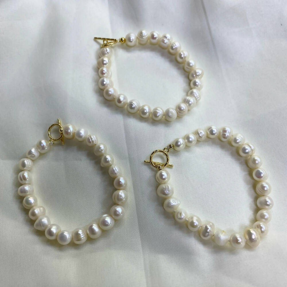 Freshwater Pearl Bracelet Material: Gold Plated Lock Length: 8 inches Shape: Potato Size: 8-9 mm