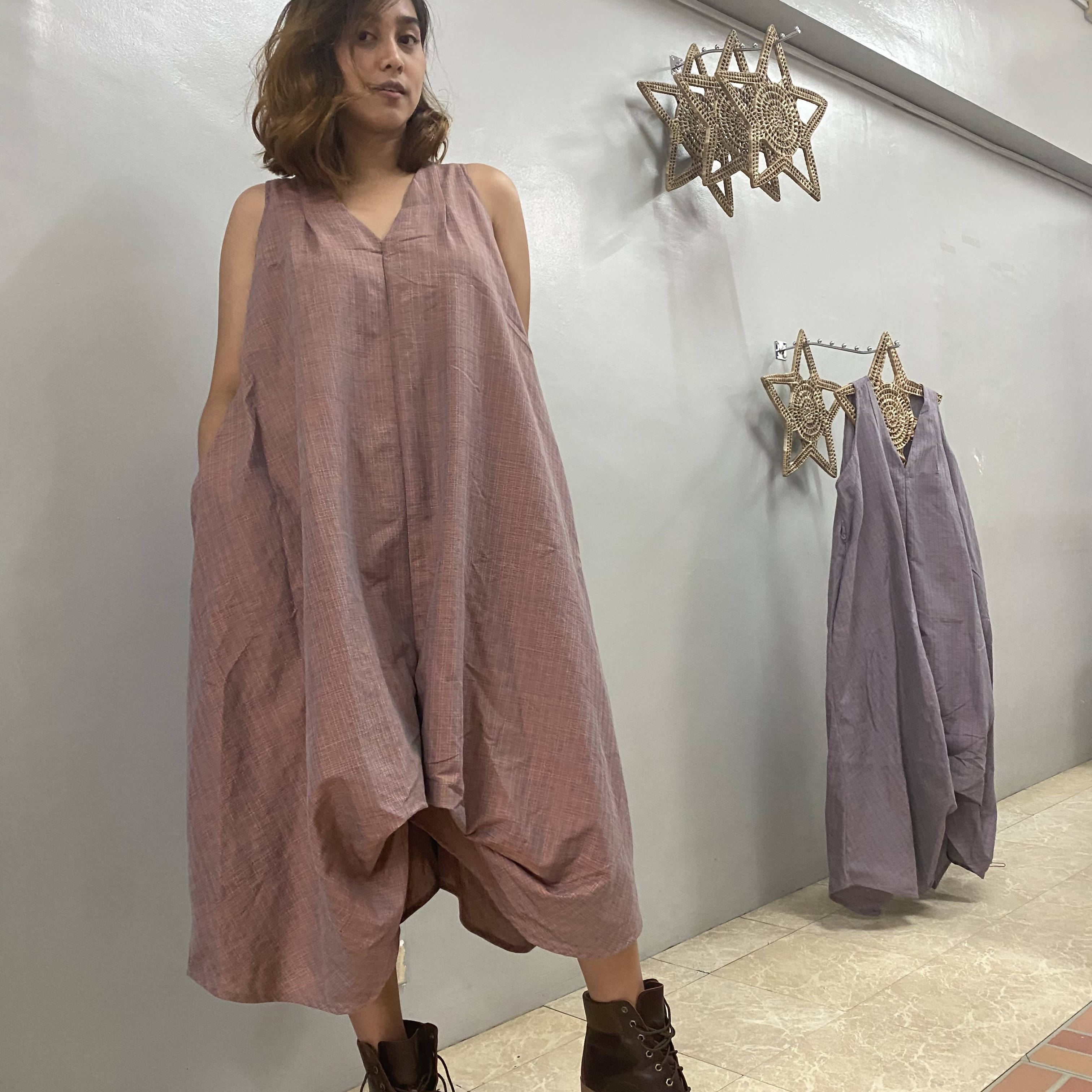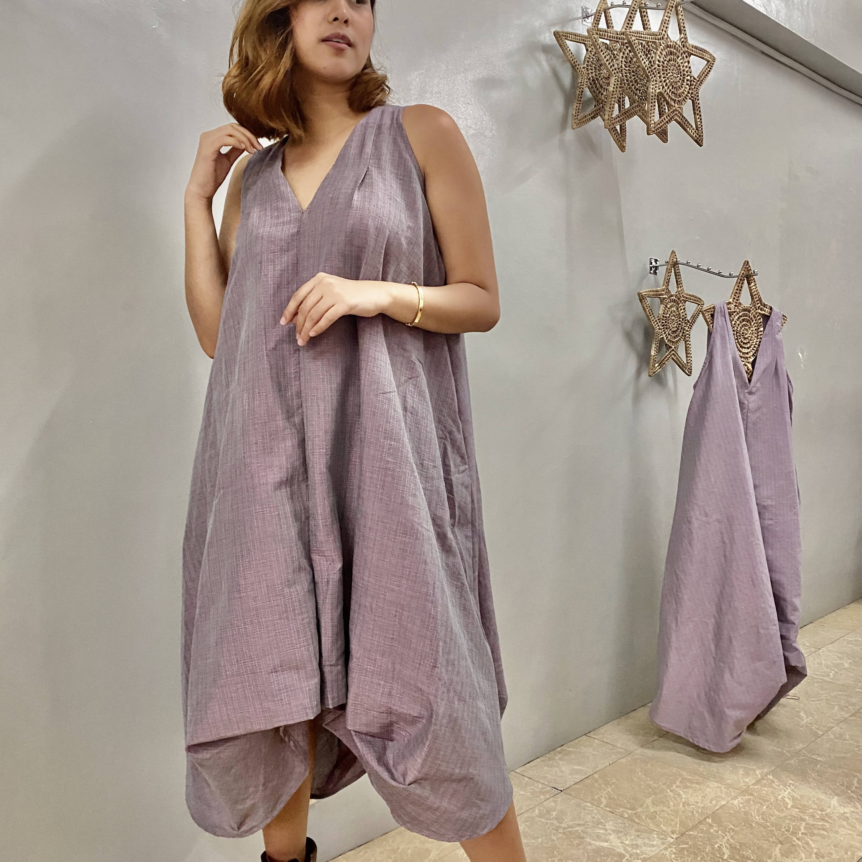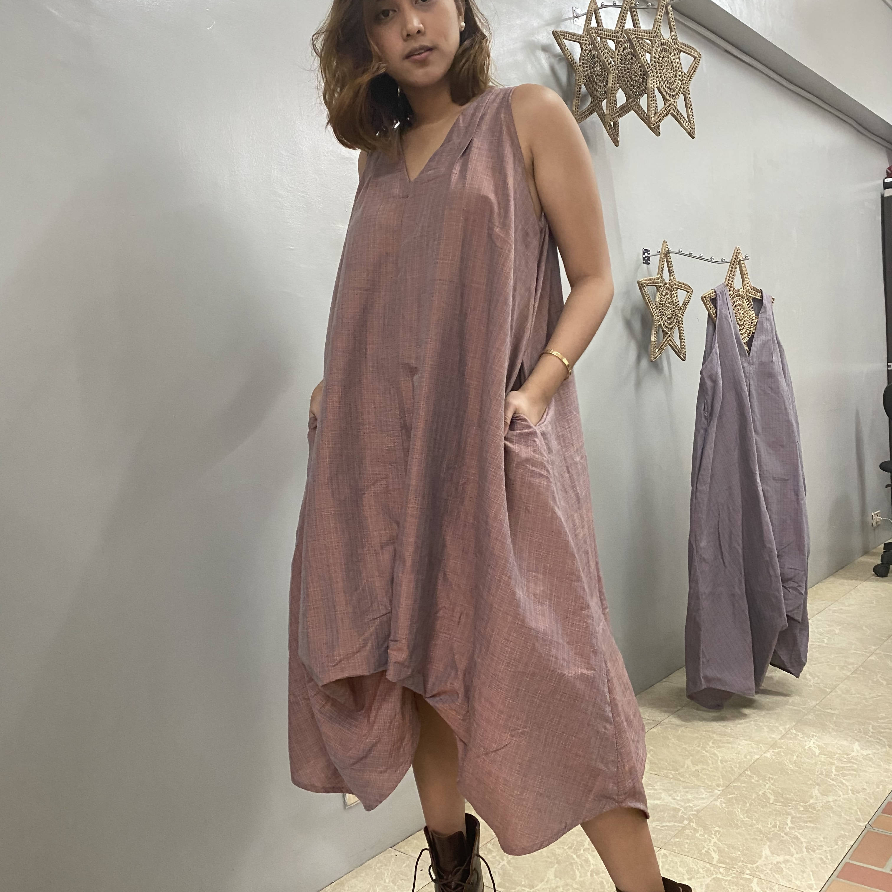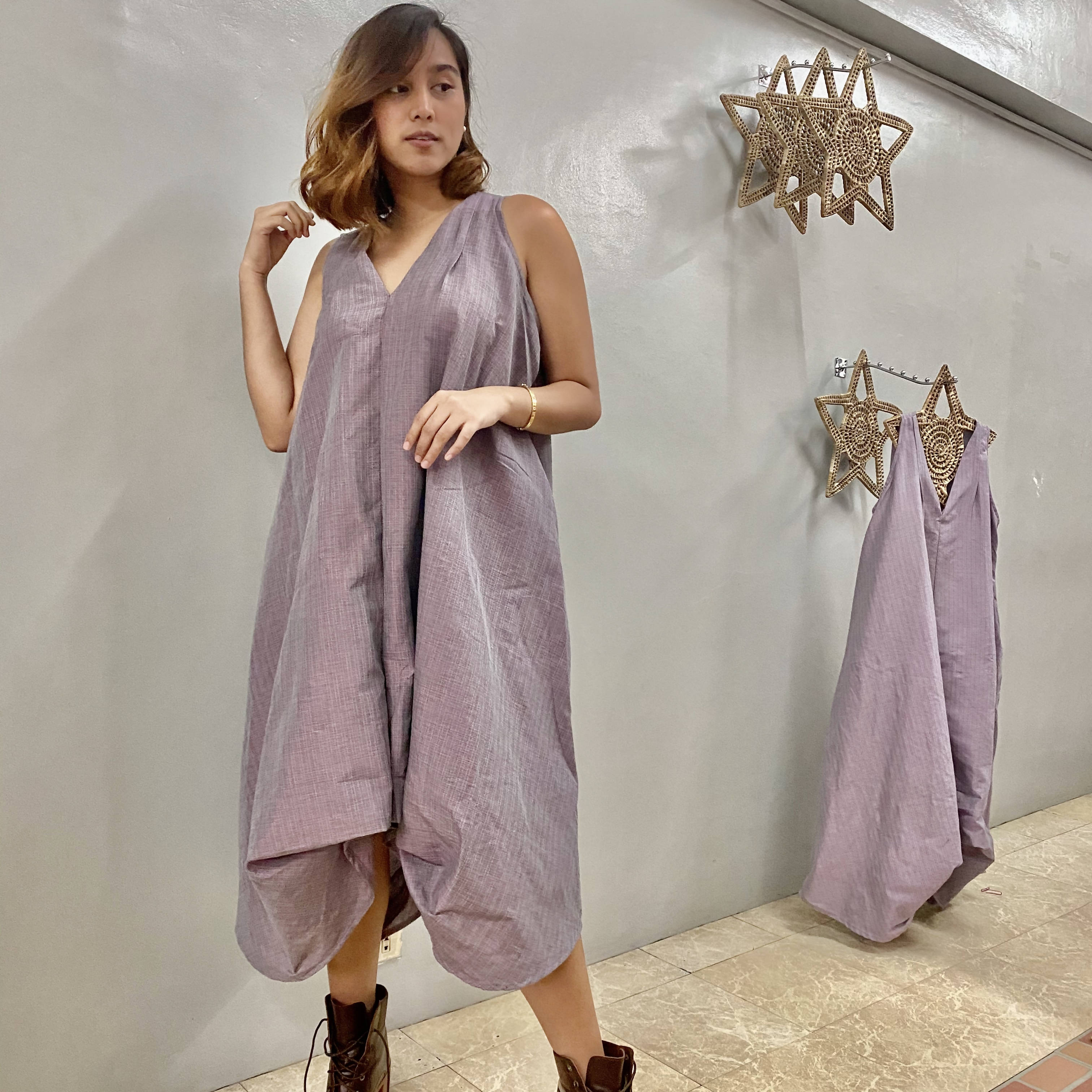 Ditas dress is perfectly versatile and on-trend.  The Feminine V neckline is graceful and modern, while the flattering design flows to the ankles, this dress is from Negros Island - Philippines weavers and designed by Vida. This style is a simple,  dressed-up look that can go from day to night seamlessly. Model wearing - size M-L 300 g 100% handwoven Weaving is Hablon- plain upcycled Polycotton Hand wash cold & mild detergent Dry in the shade Use warm iron  Available in limited colors and may vary since the thread used for hand-weaving upcycled. Made in Negros, Philippines